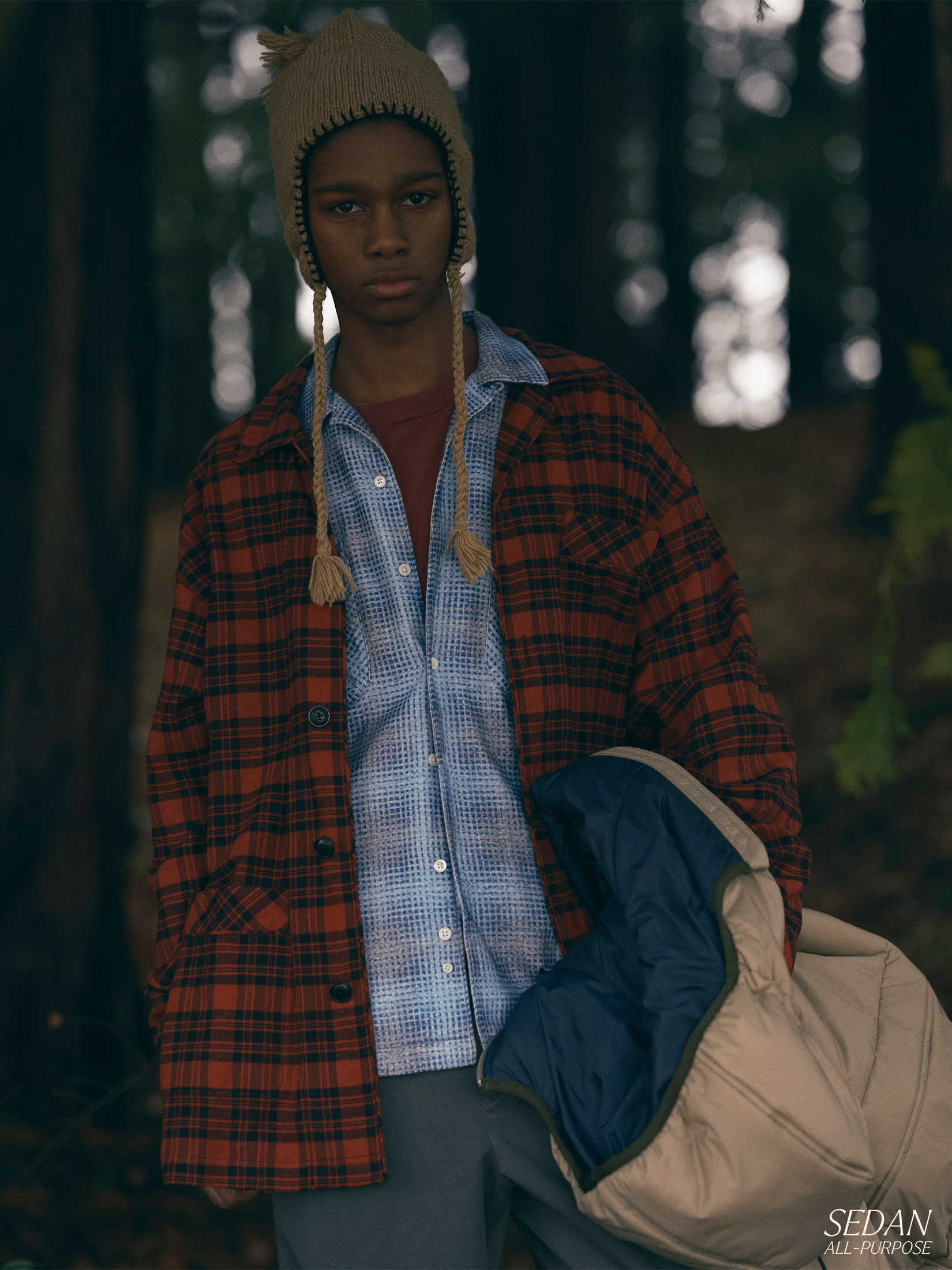 こちらは初登場のパジャマシャツ。古着だと綿からシルクから柄も様々で、なかなか掘り甲斐のあるアイテム。独特なアイテムが故、パジャマシャツで有名な某ギターボーカルのようにナチュラルに着こなすのは難しかったりもします。なので、SEDANでは普段着用のしやすいチェック柄や程よい厚みの微起毛素材、何より秋にはシャツアウターとしてかなり重宝してくれるアイテムとなっています。今はデザイン的な形としても残っているポケットですが、当時からナイトウェアとしてだけではなく、就寝時以外にも生活の中で着る時間が長く、ポケットがあると便利だったということで、そのあたりの実用性が備わっているのもパジャマシャツのいいところ。