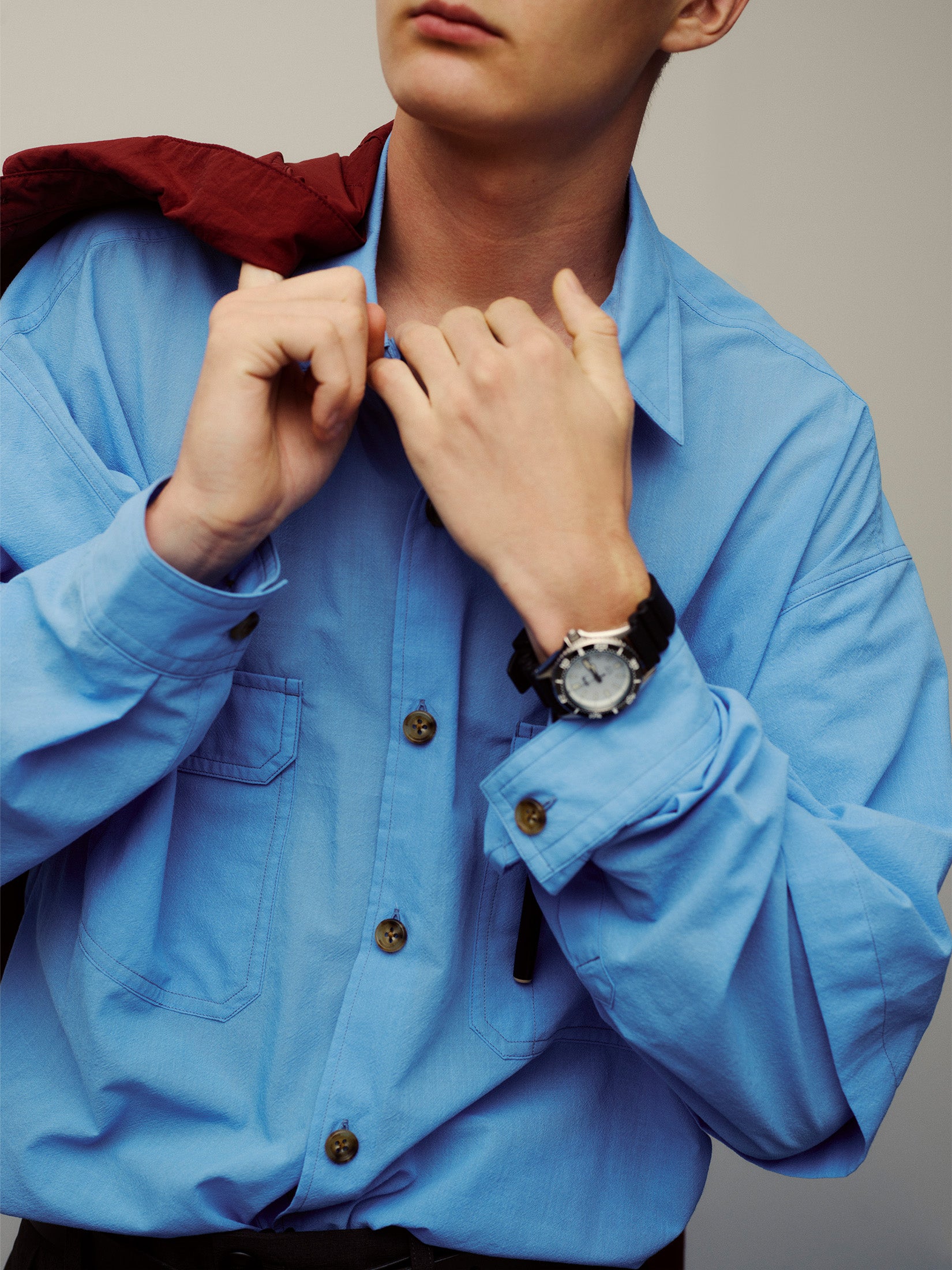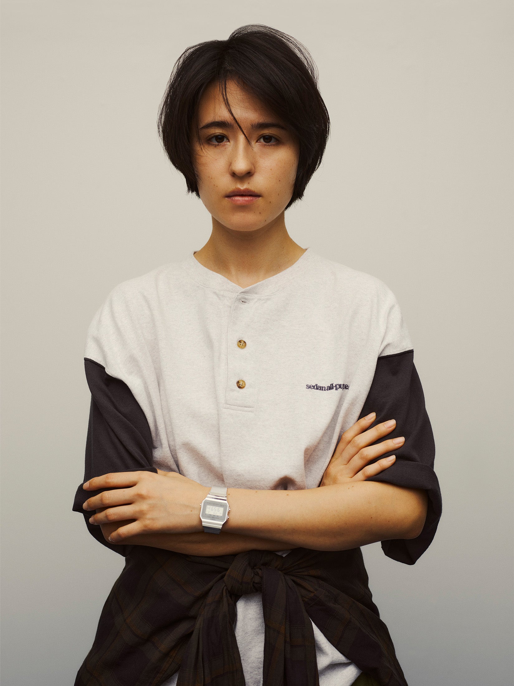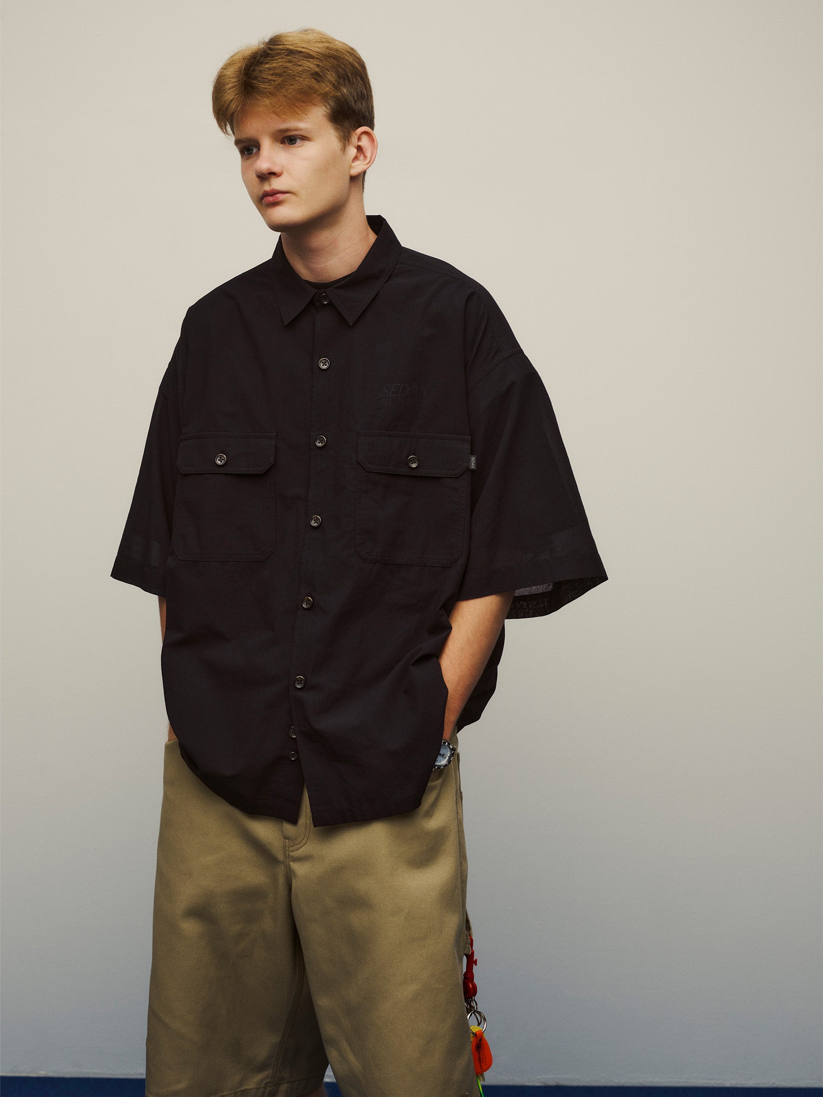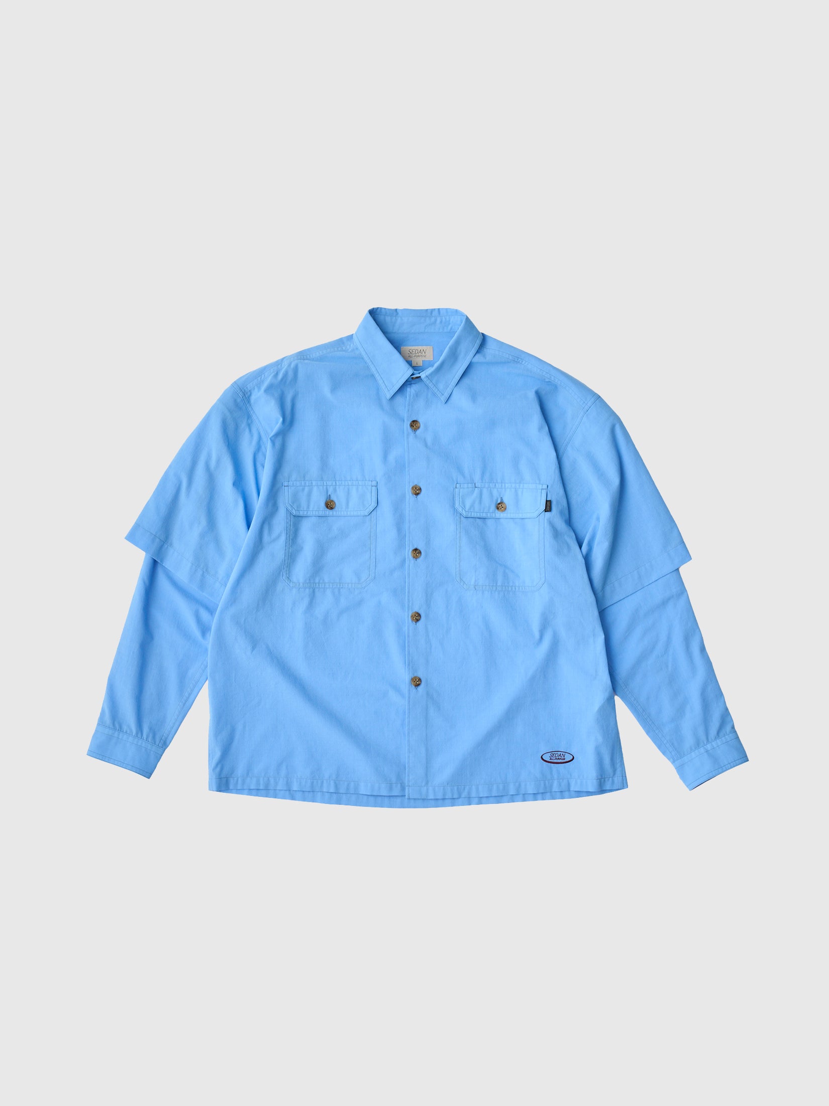 せっかくならシャツも長く快適に着れるのに越したことはない。長袖状態のときはレイヤードしているような見た目になり、袖を取り外すと半袖シャツになる去年も好評だったギミック付きのシャツ。今回はワークシャツをベースに、といっても無骨なワーク臭も無く少し透け感のある無地のポリレーヨン素材なので、とても軽くて涼しいです。肌にまとわりつくこともなく、ボックス型でゆったりとしたシルエットなのもいい。最近は特に寒暖差も激しいので、臨機応変に袖の着脱を楽しんでみてください。