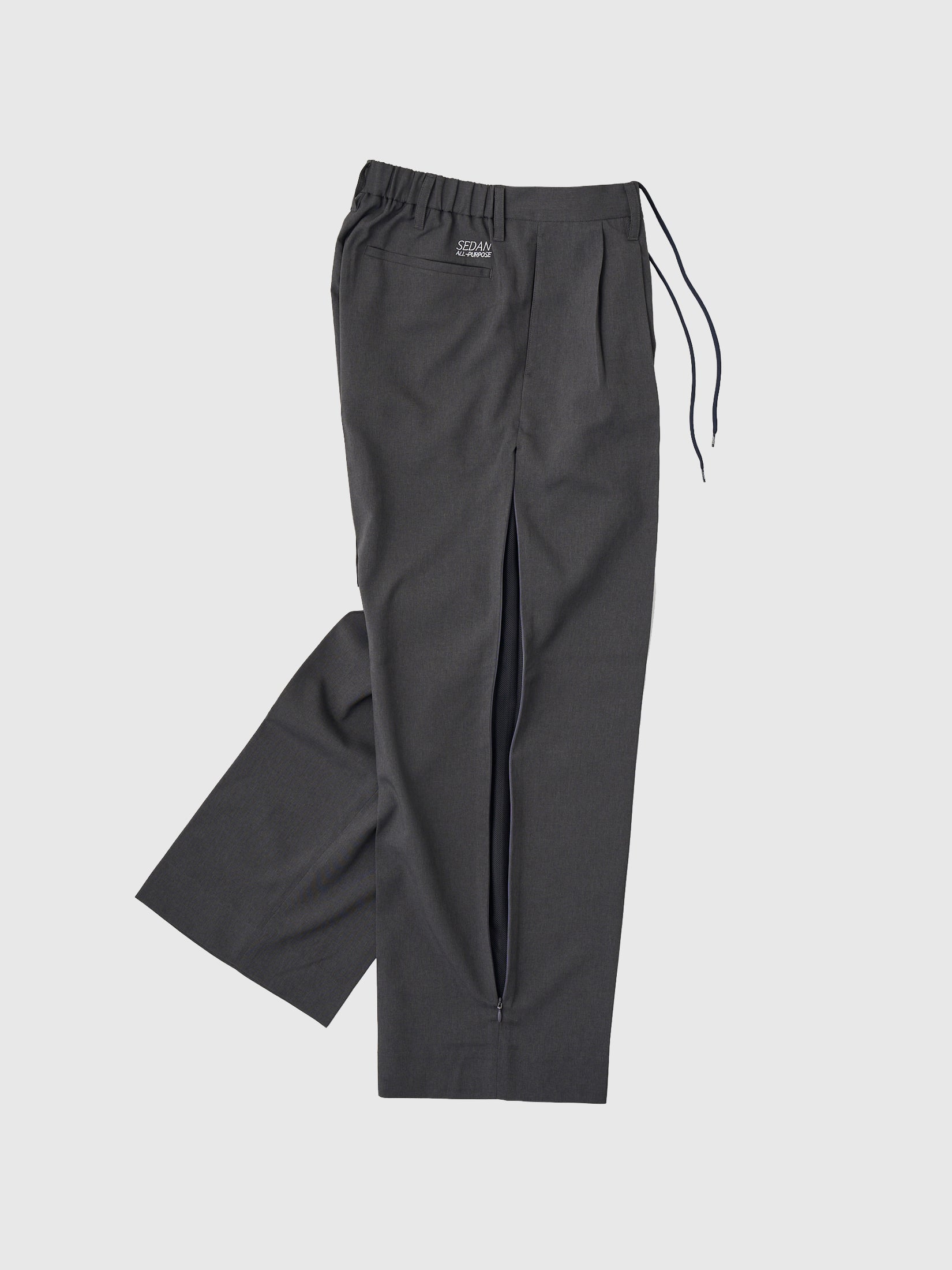 今年も今後の猛暑に負けず、夏でもスラックスを履きたい派の方々に朗報です。去年からリリースを続けているベンチレーション付きのワイドスラックスを今年も出します。基本的にはSS24から継続で、トロピカルウールのような洗えるポリエステル素材、ウエストにゴム入りのイージー仕様。前回はサイドラインのように現れる配色のメッシュを使用していましたが、今回はよりベーシックに履けるよう落ち着いたカラー展開となっています。毎回完売が早いため、今年こそはという方はお早めに。