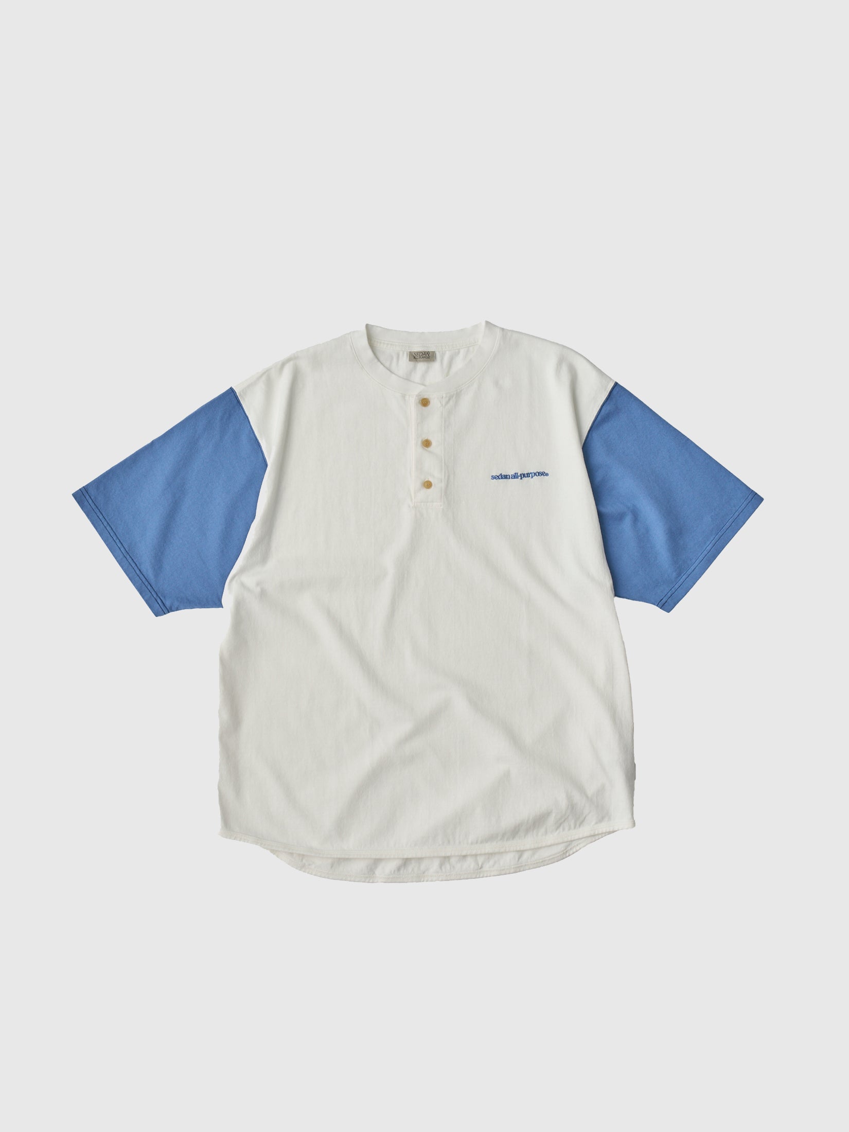 ヘンリーネックのカットソーだとクラシックすぎるなぁと避けていた方にもこれなら着やすいのではないかとおすすめの1着です。胴長ではなく身幅の広いベースボールTがベースとなっているため、クラシックにもスポーティーにも偏りのないベーシックに着れるのがポイントです。配色といい胸のレトロアウトドアっぽいロゴ刺繍といい、お決まりのカットソーに飽きている方には是非手に取っていただきたいです。