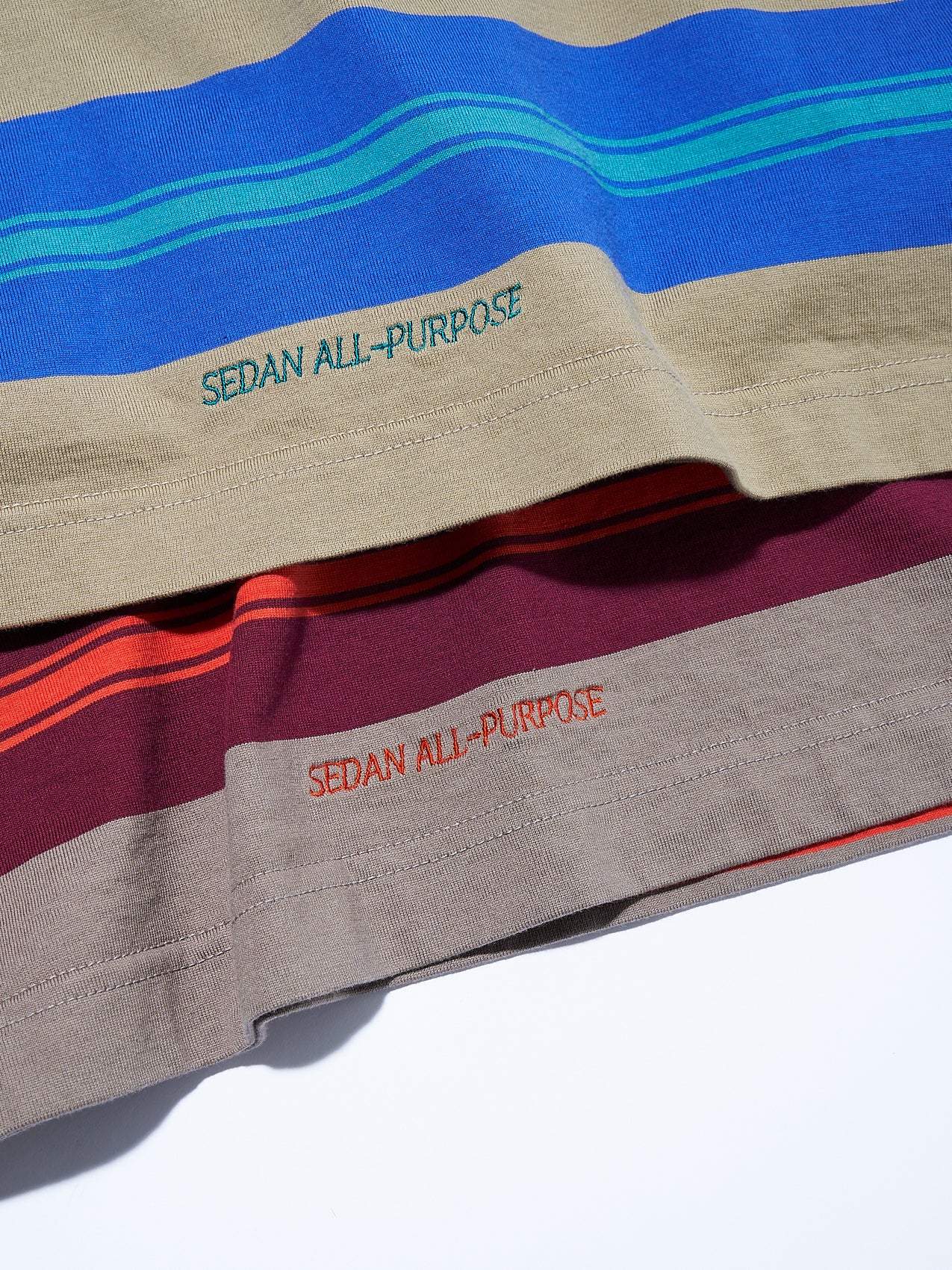 ボディはちょうどいい肉感で、SEDAN定番の「OG LOGO S/S TEE」よりも大きめな作りになっています。それぞれのサイズで上記Tシャツより身幅+1cm, 着丈+4cm, 肩幅+1cmくらいのサイズ感です。後ろの裾にはSEDANでお馴染みのシャツと同じロゴステッチが入り、脇に小さいピスネームが付きます。こちらのTシャツはポロシャツタイプもあるので、お好みの方を是非。