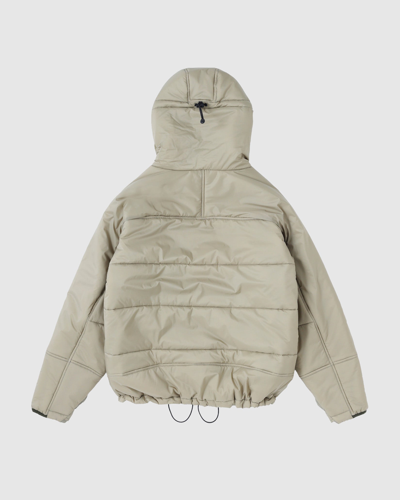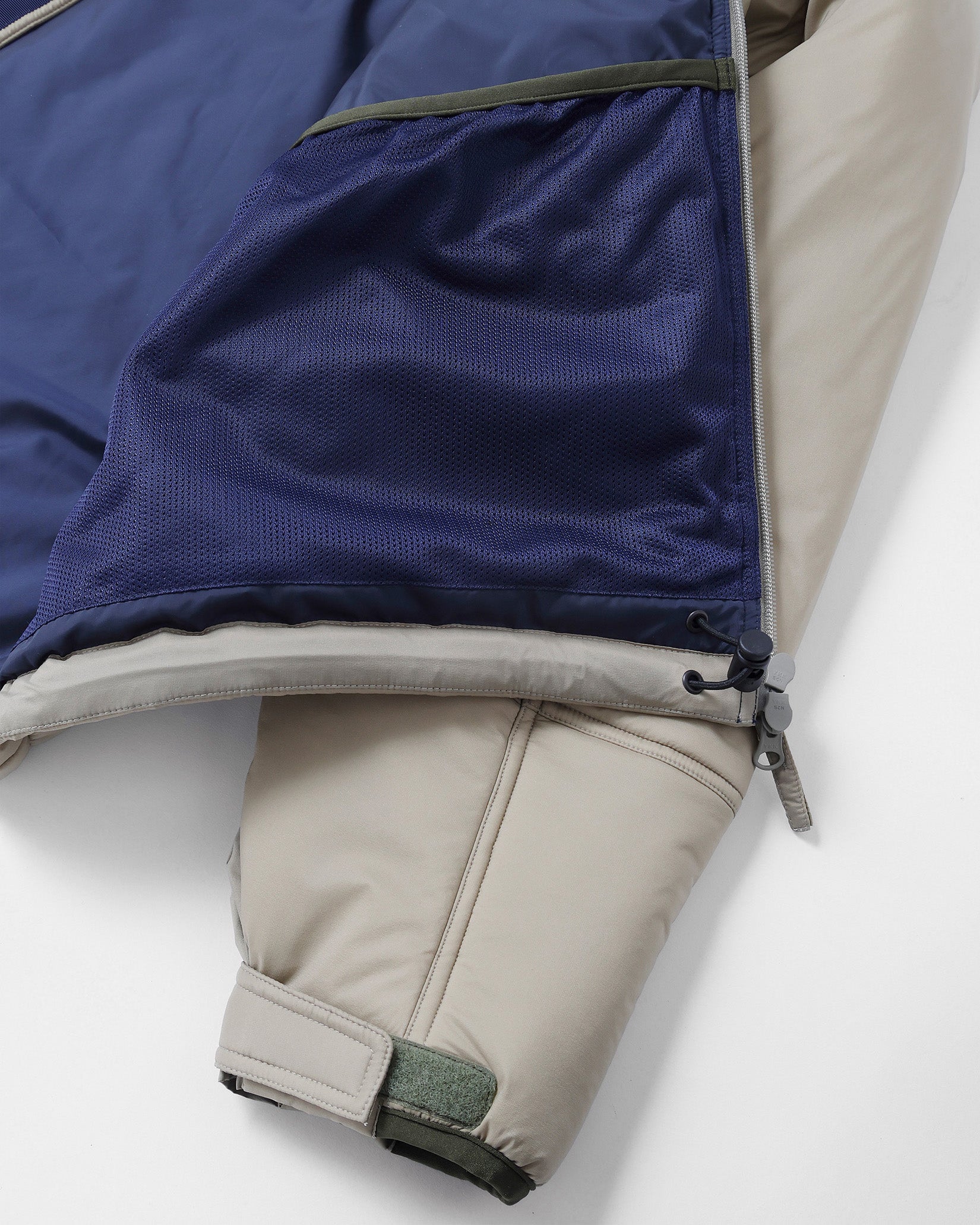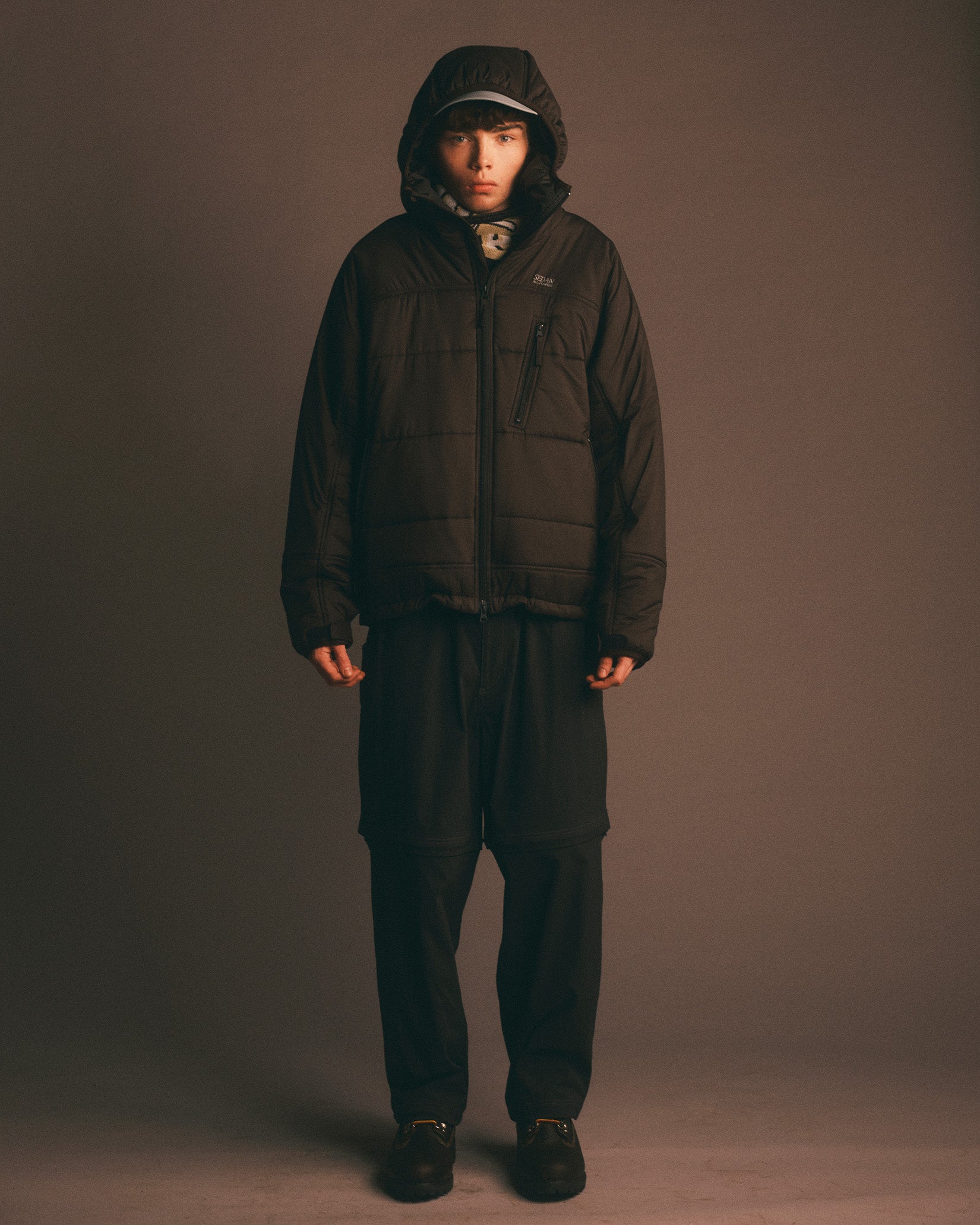 ダウンも好きだがそれ以上によく着ているのが中綿入りのジャケット。軽い、洗える、あんまりスタイル選ばない(ような気がする)とサクッと着るのにちょうどいいのだ。さらにフードが付いていたら最高ということで、大好きなあのモデルをベースに一番欲しい中綿のアウターを作った。シェルには防風性の高いマイクロリップ生地を使用。リサイクルナイロン100%の生地はほどよくマットで裏地との配色も最高。アウトドアから街まで違和感なく着れる。フードもボリュームがあり、被ったスタイルもよい、セダン的推しの一着。胸にセダンのロゴ刺繍。フードの後ろ、身頃裾にアジャスター。ビッグサイズの内ポケット2つ。