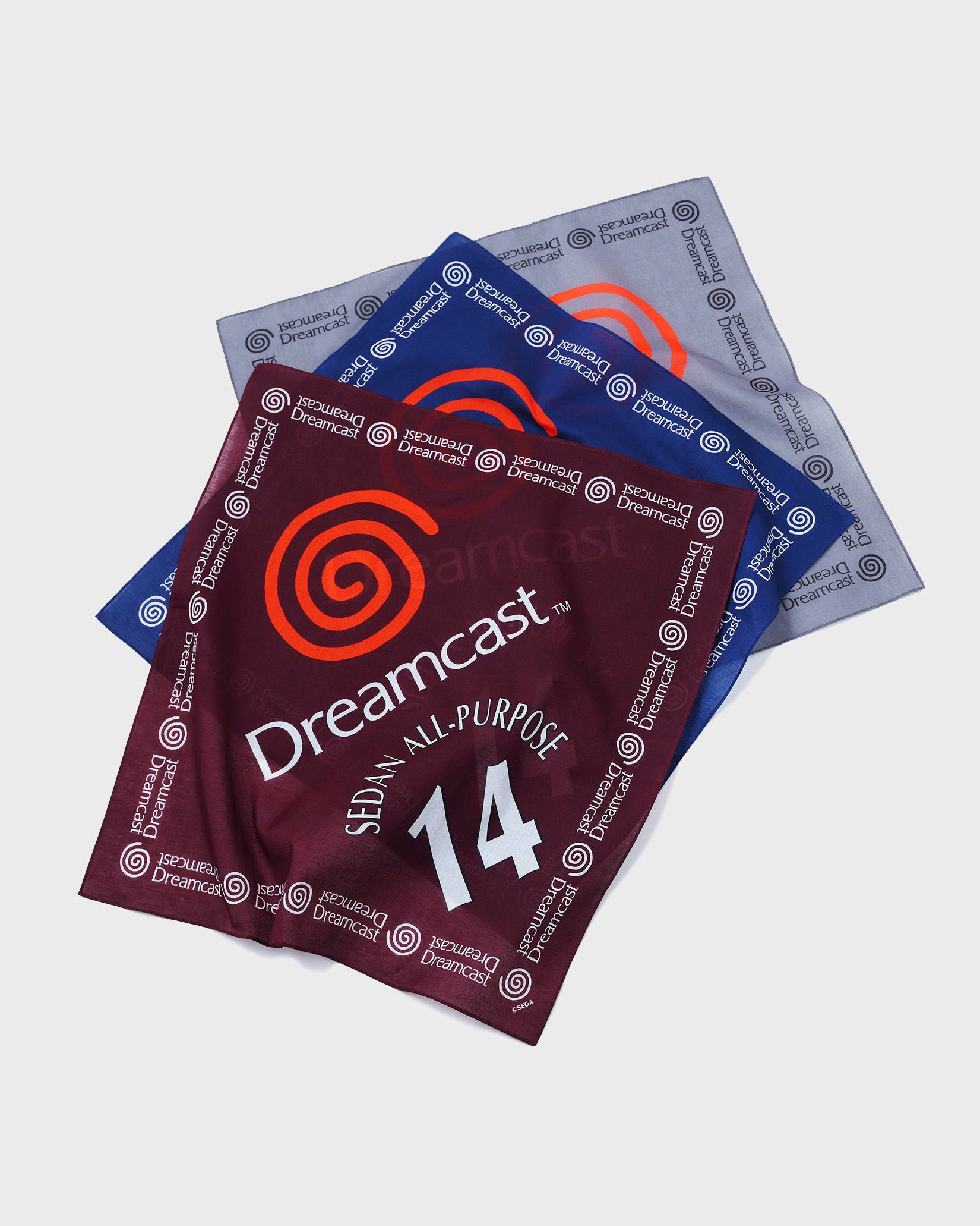 ネットワーク機能を標準搭載したセガ最後の家庭用ゲーム機であるDreamcast(ドリームキャスト)。エンターテイメントの未来を先取りするマシンとして誕生した「夢のゲーム機」。本格的なオンラインコミュニケーション 機能を持つ、業界初の家庭用ゲーム機である。 そんなドリームキャストとセダン オールパーパスのコラボレーションアイテムを作成しました。ドリームキャストが持つ革新性はアメリカンカルチャーから新しい発想でモノづくりをする日本発のブランドであるセダン オールパーパスとの相性も良いのではという想いから今回のコラボレーションに至りました。バンダナはハンカチとして使用するのはもちろん、キャップと合わせて日除けにするのもおすすめです。