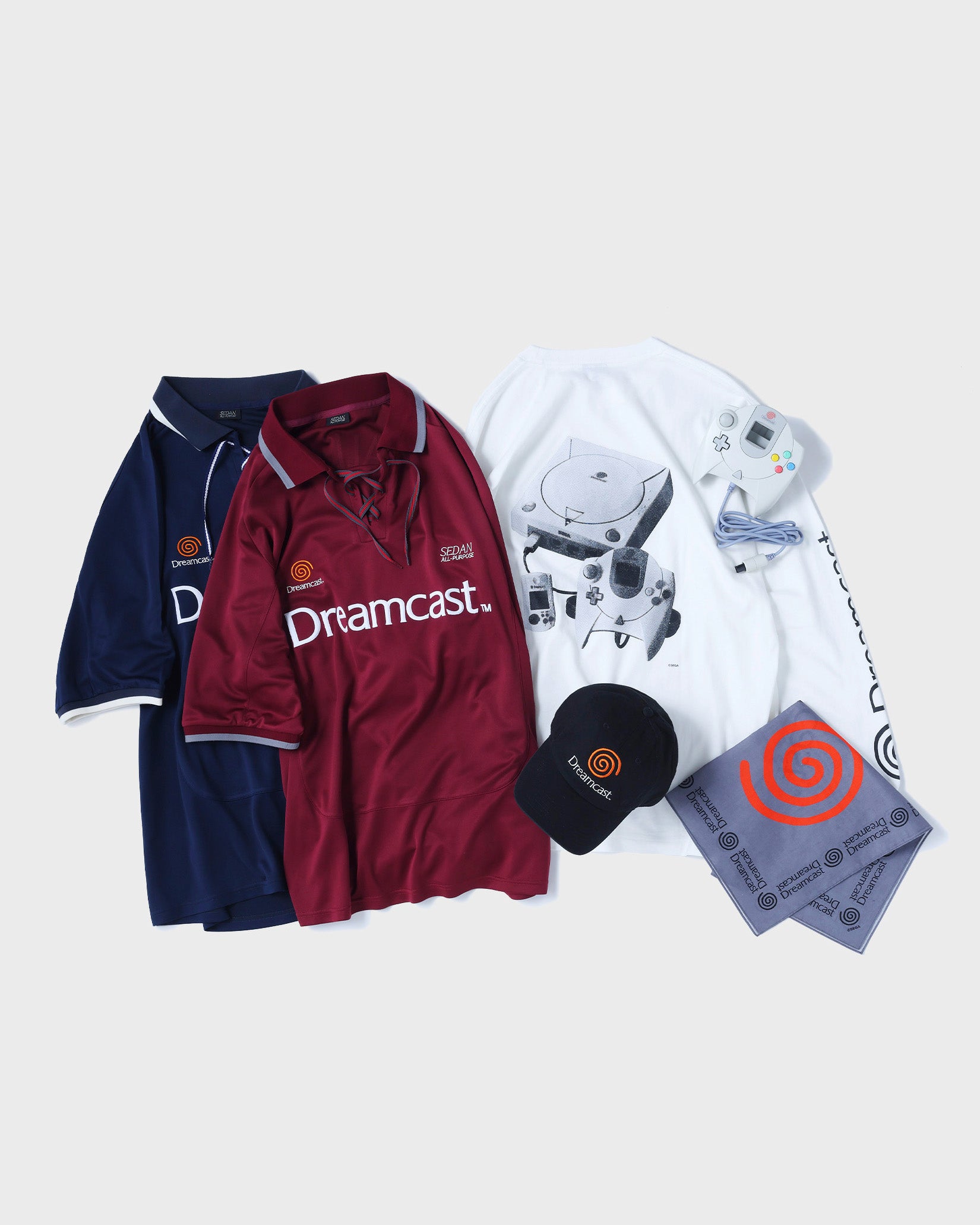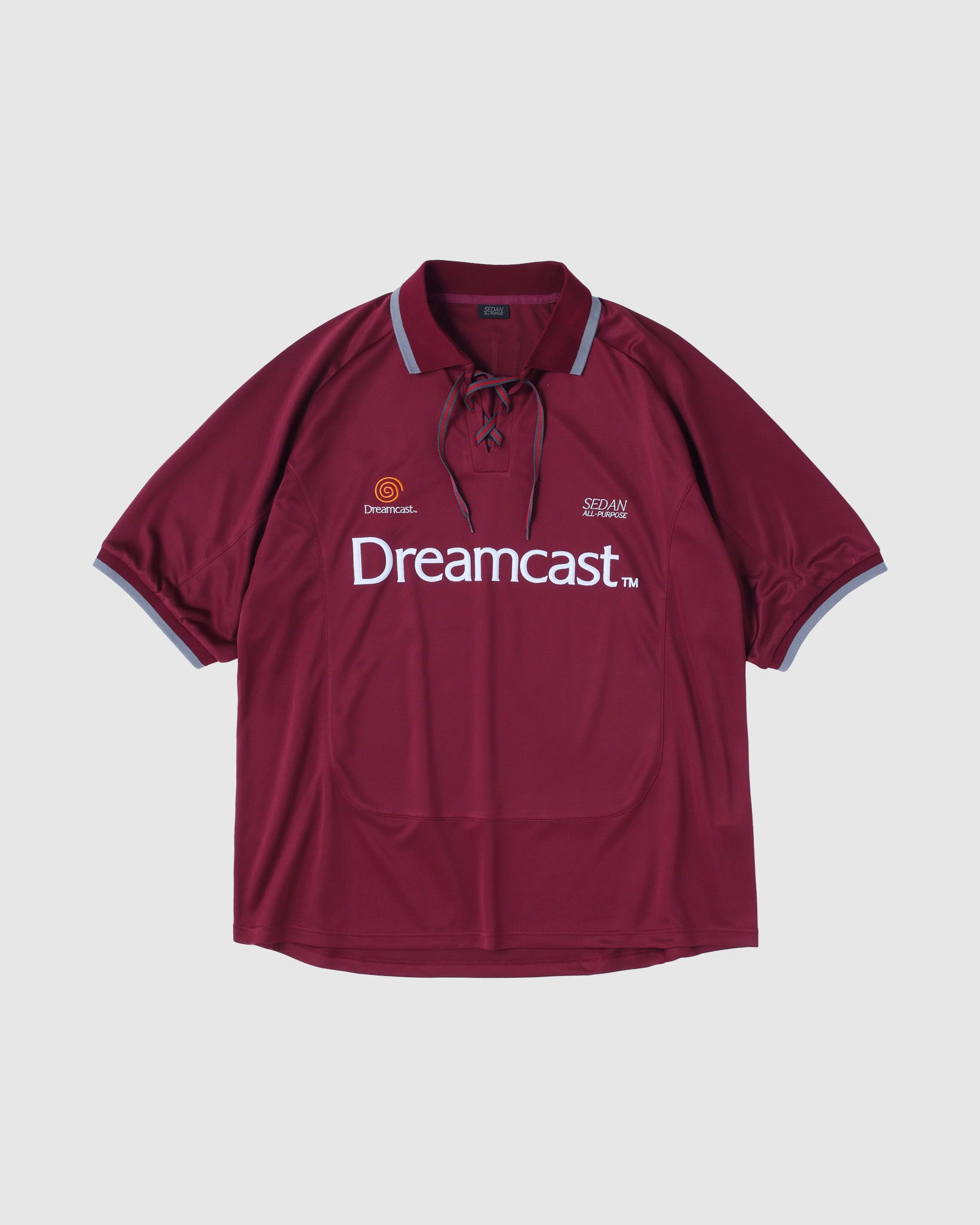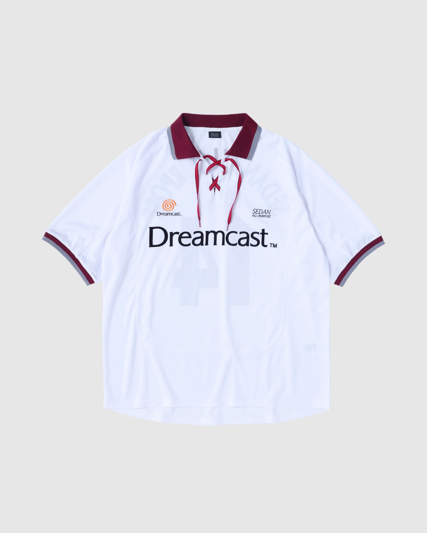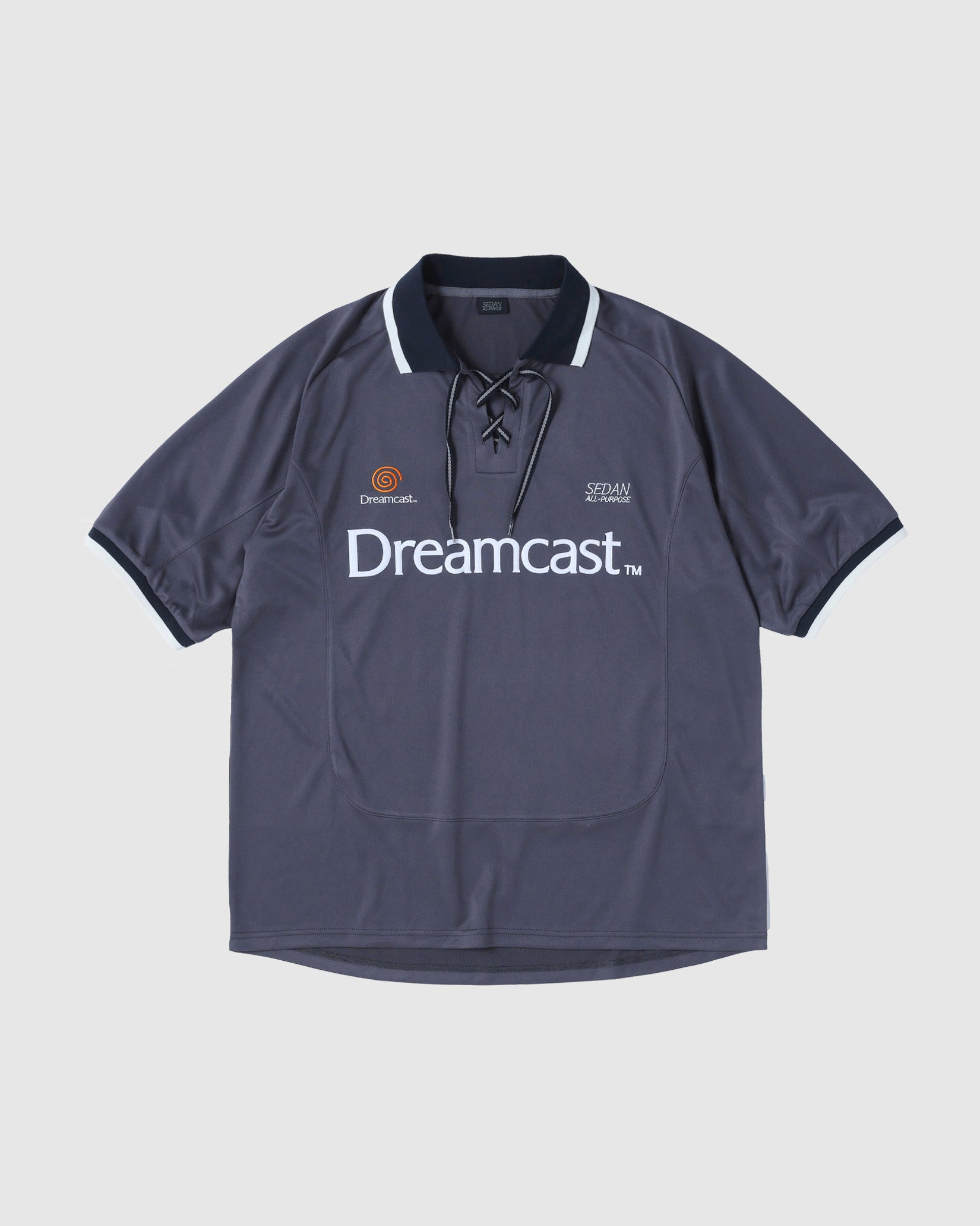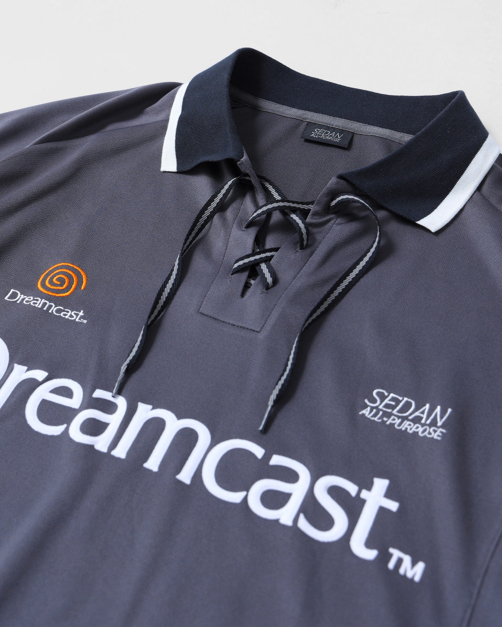 ネットワーク機能を標準搭載したセガ最後の家庭用ゲーム機であるDreamcast(ドリームキャスト)。エンターテイメントの未来を先取りするマシンとして誕生した「夢のゲーム機」。本格的なオンラインコミュニケーション 機能を持つ、業界初の家庭用ゲーム機である。 そんなドリームキャストとセダン オールパーパスのコラボレーションアイテムを作成しました。ドリームキャストが持つ革新性はアメリカンカルチャーから新しい発想でモノづくりをする日本発のブランドであるセダン オールパーパスとの相性も良いのではという想いから今回のコラボレーションに至りました。ゲームシャツはレトロ感のあるレースアップタイプ、胸のドリームキャストロゴはフロッキープリント、両胸のロゴは刺繍、背面はシルクスクリーンプリントと豪華な仕様のデザインとなっています。