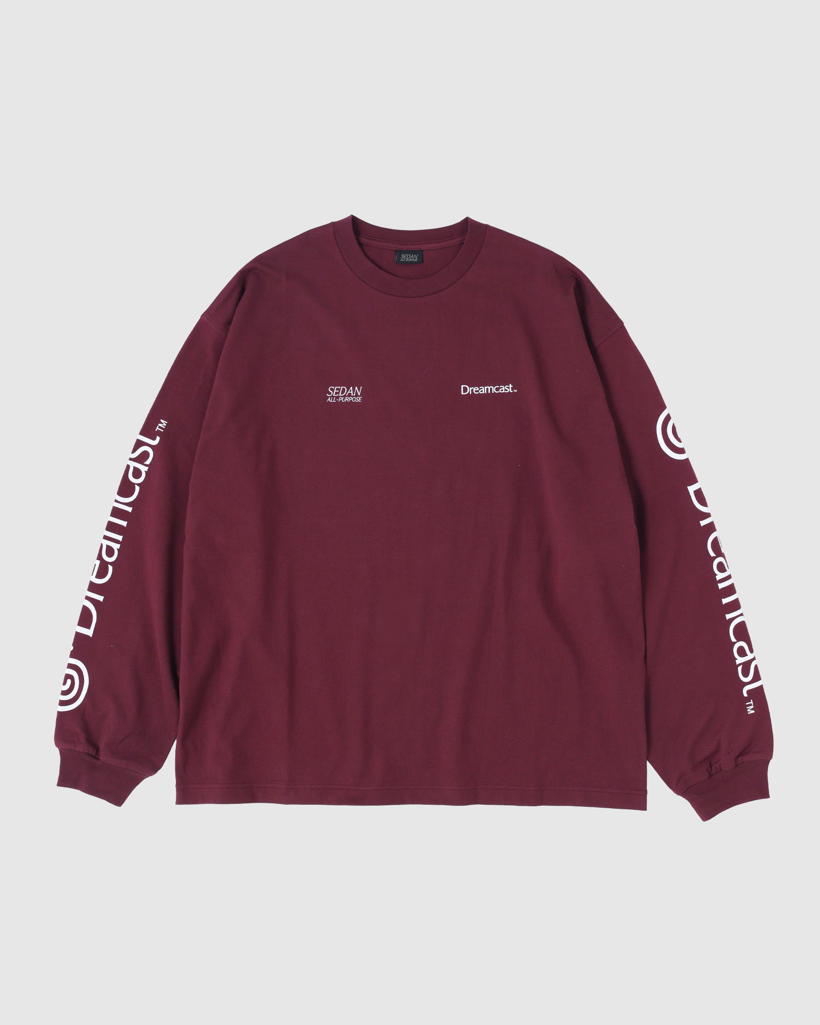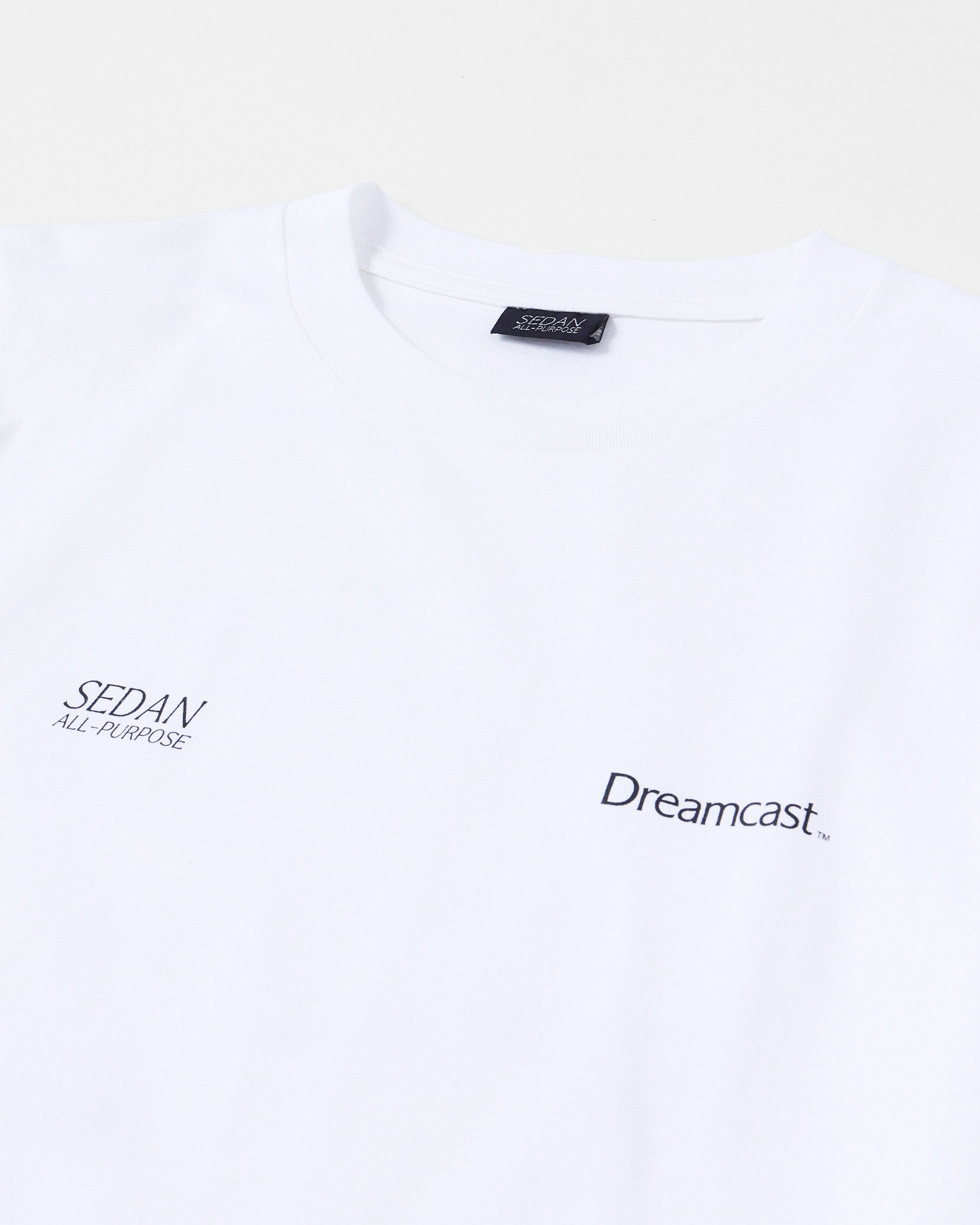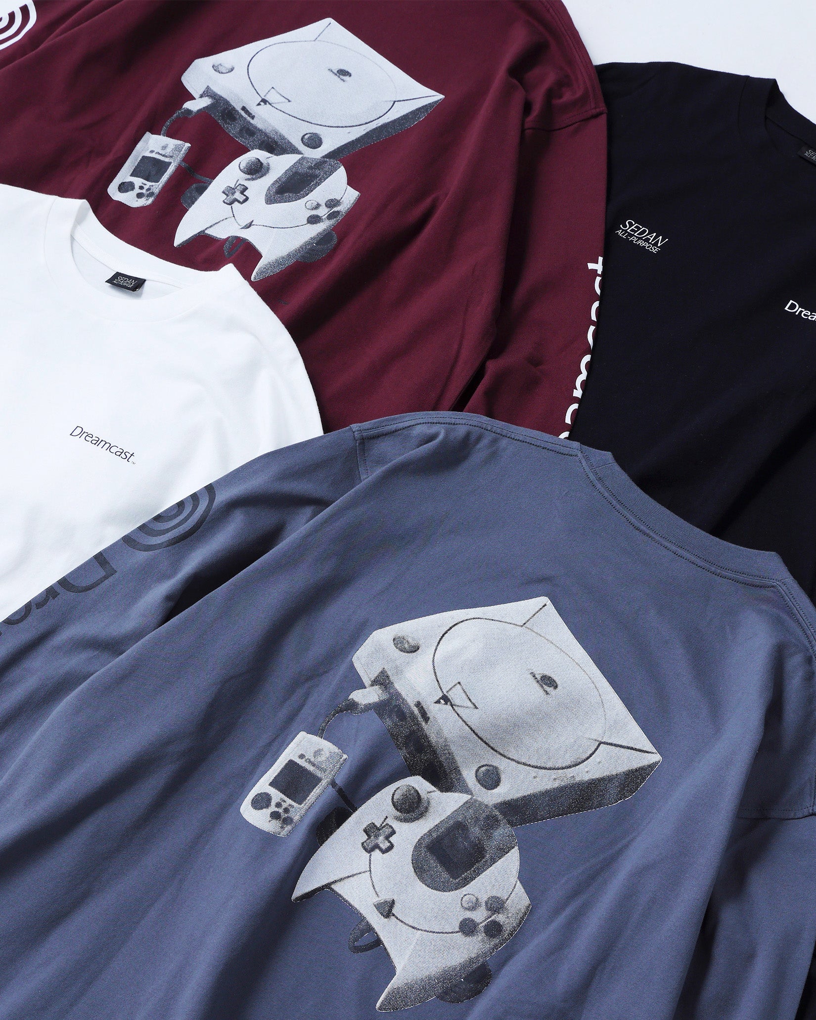 ネットワーク機能を標準搭載したセガ最後の家庭用ゲーム機であるDreamcast(ドリームキャスト)。エンターテイメントの未来を先取りするマシンとして誕生した「夢のゲーム機」。本格的なオンラインコミュニケーション 機能を持つ、業界初の家庭用ゲーム機である。 そんなドリームキャストとセダン オールパーパスのコラボレーションアイテムを作成しました。ドリームキャストが持つ革新性はアメリカンカルチャーから新しい発想でモノづくりをする日本発のブランドであるセダン オールパーパスとの相性も良いのではという想いから今回のコラボレーションに至りました。ロングスリーブTシャツは両胸と袖にロゴプリント。背面には網点でつくったドリームキャスト本体のフォトプリントが入ります。
