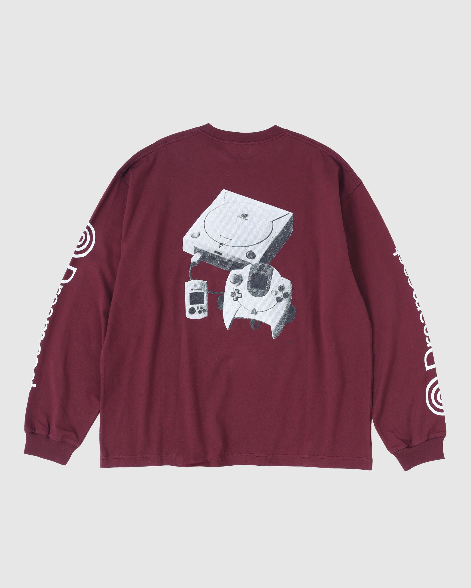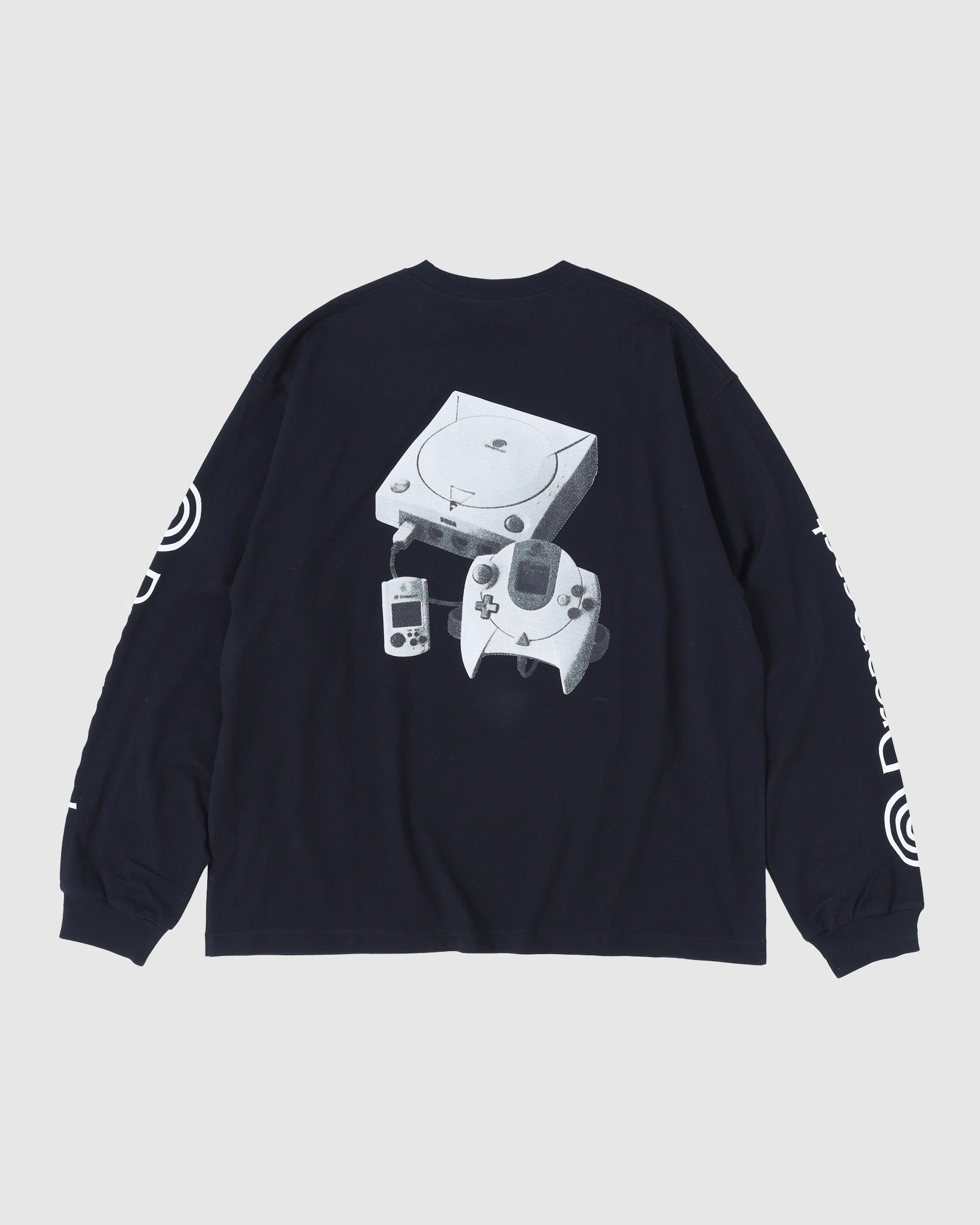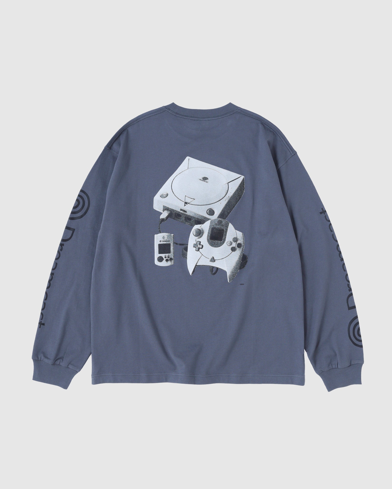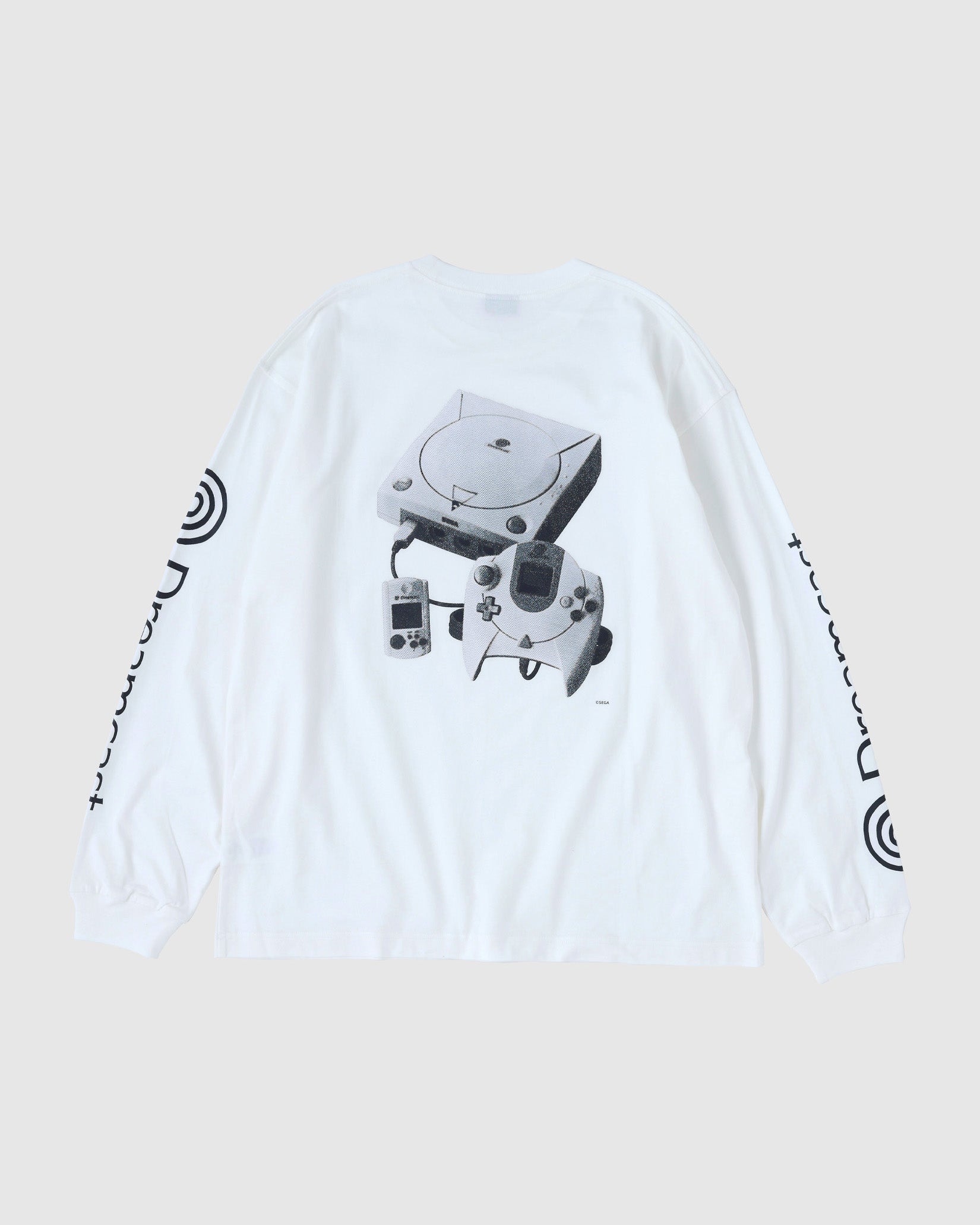 ネットワーク機能を標準搭載したセガ最後の家庭用ゲーム機であるDreamcast(ドリームキャスト)。エンターテイメントの未来を先取りするマシンとして誕生した「夢のゲーム機」。本格的なオンラインコミュニケーション 機能を持つ、業界初の家庭用ゲーム機である。 そんなドリームキャストとセダン オールパーパスのコラボレーションアイテムを作成しました。ドリームキャストが持つ革新性はアメリカンカルチャーから新しい発想でモノづくりをする日本発のブランドであるセダン オールパーパスとの相性も良いのではという想いから今回のコラボレーションに至りました。ロングスリーブTシャツは両胸と袖にロゴプリント。背面には網点でつくったドリームキャスト本体のフォトプリントが入ります。