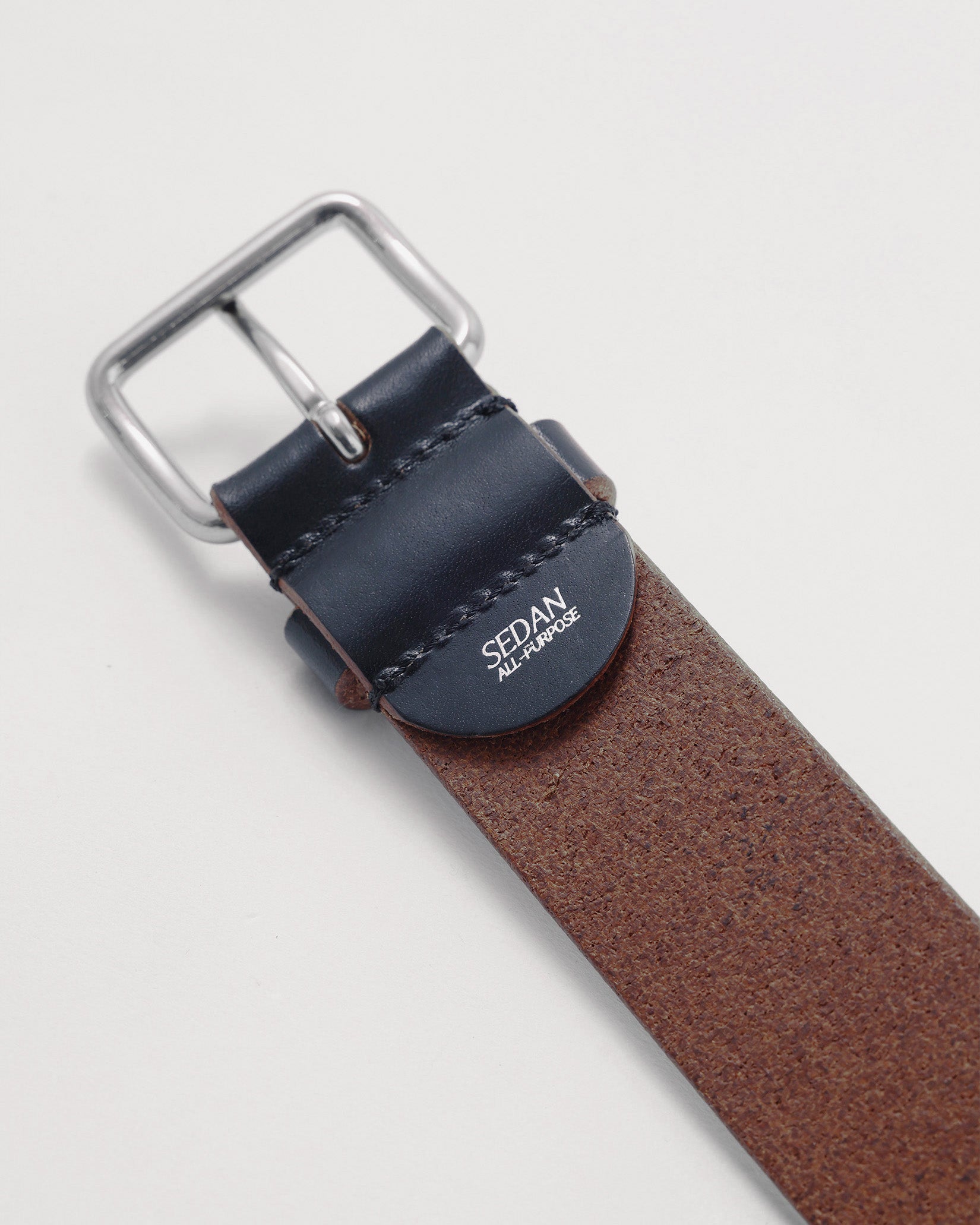近年はずっと細いベルトを愛用していたが、久しぶりにちょっと存在感のある太めのベルトを着けたくなった。イタリアの極厚のレザーの表面に黒い顔料染めをしてもらい、使い込むと茶芯のレザーの雰囲気になるベルトを作った。長さはいつも通りちょっと垂れるくらいの長さに、ベルトは毎日する事も多いのでデザインはできるだけシンプルに。剣先の絶妙なカーブにもこだわった、シンプルながらも存在感のある一本です。 長さ135cmくらい 75cm~92cmくらいのウエストに対応できるように7個の穴が開きます。NA'VVYに作ってもらったハンドメイド・イン・ジャパン。