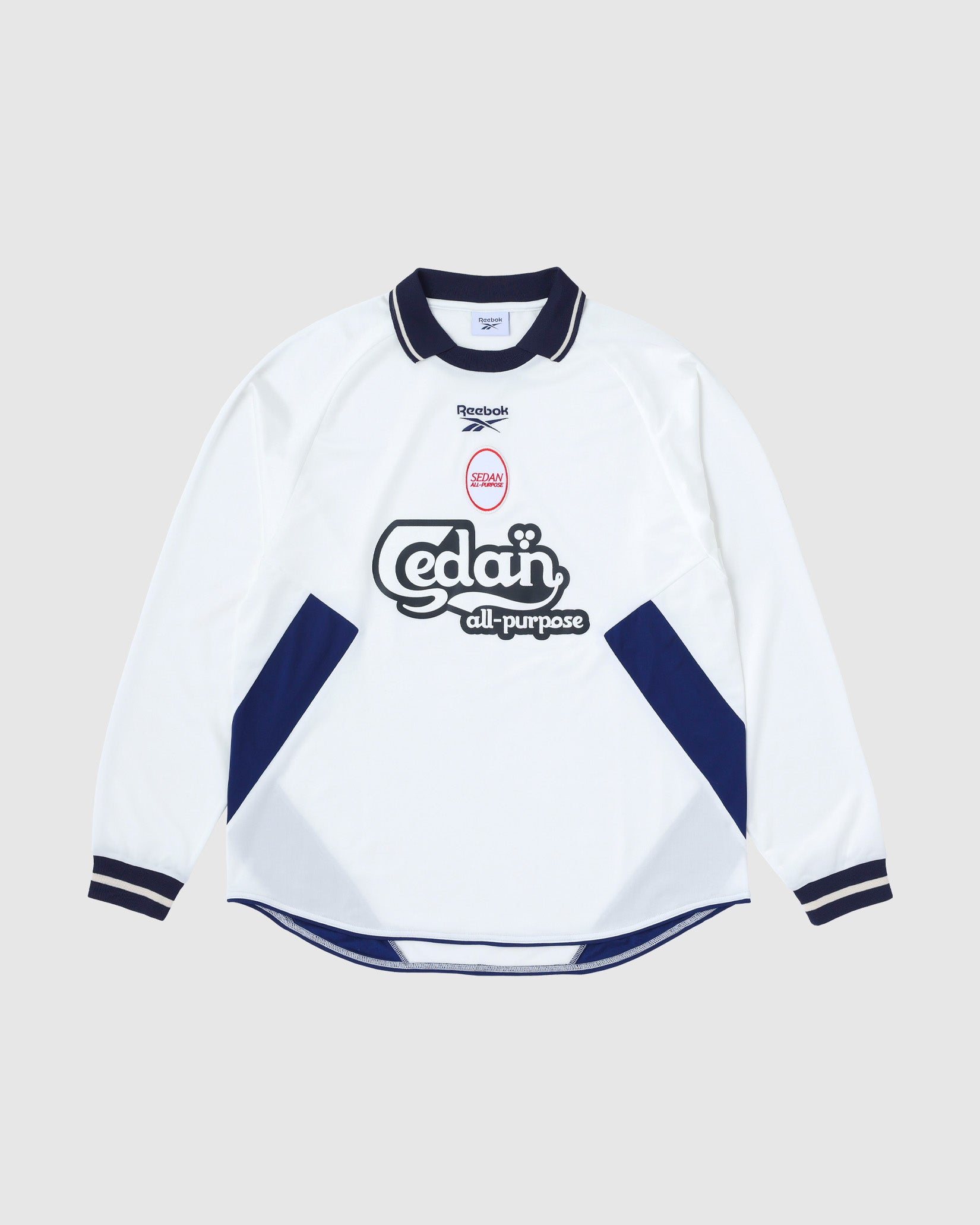 英国発の世界的スポーツブランドであるReebok。古くからスポーツチームへのスポンサード活動や革新的な広告でも知られています。そんなReebokとSEDAN ALL-PURPOSEのカプセルコレクションを作成しました。SEDANではお馴染みのゲームシャツですが、珍しいロングスリーブや胸のフロッキープリントや刺繍ワッペンなど豪華な仕様となっています。またドレープ感のある生地を使用しているので、ジャケットのインナーにしていただくのもおすすめのコーディネートです。英国を感じるカラーリングにも注目です。