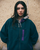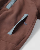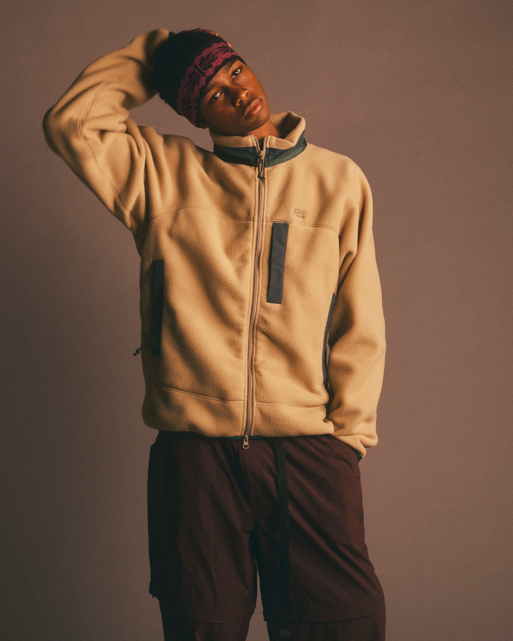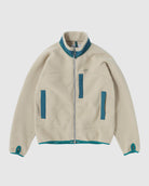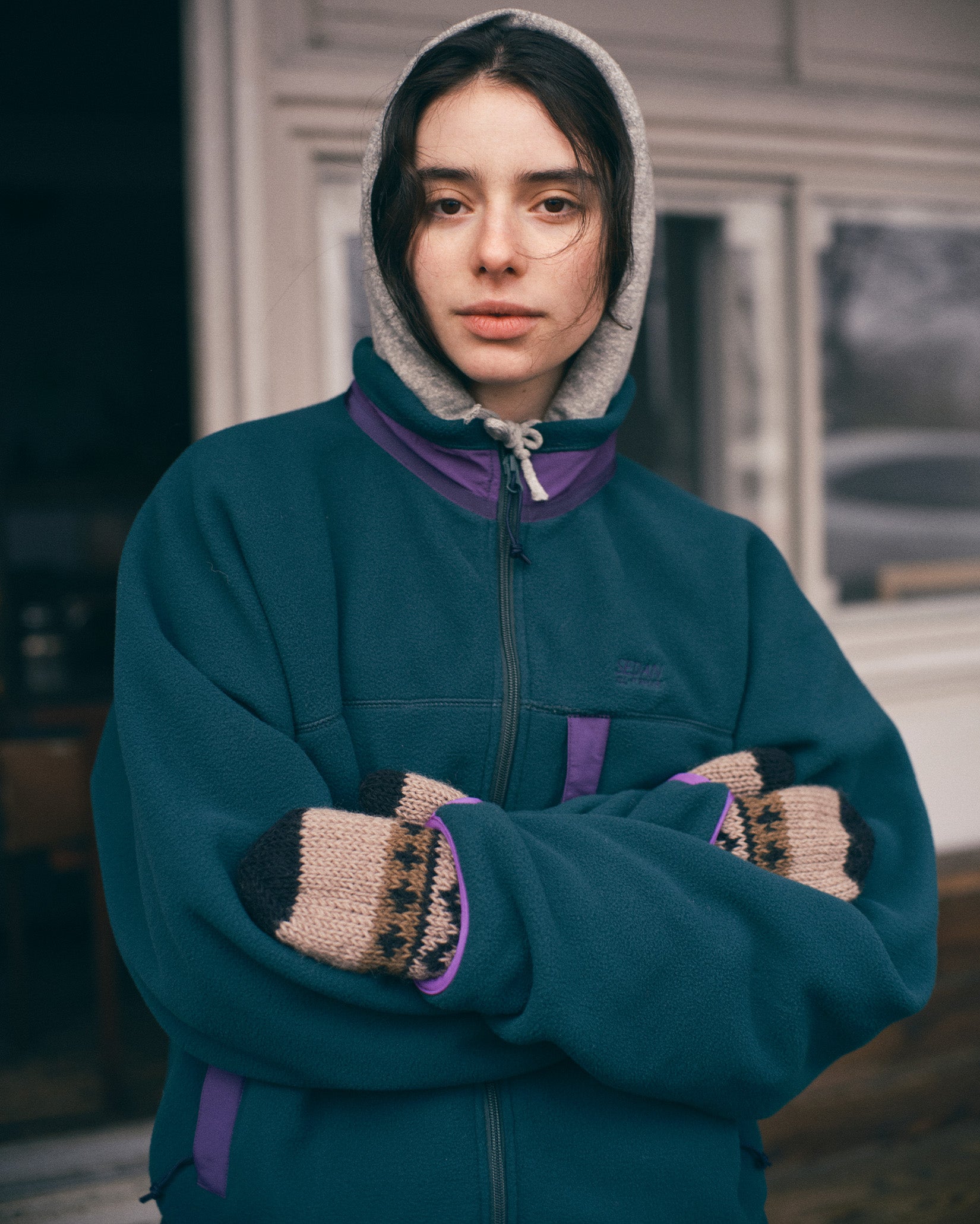 90年代のアウトドアファッションの中でも大好きなポイントの一つが色の組み合わせだ。表地と裏地、部分使いしたちょっとした別布、ファスナーを開けた時にだけ覗く差し色、誰も気付かないポケットの中…と数えたらきりが無い。そんなアウトドアファッションの醍醐味を感じられる配色のフリースジャケットを作った。当時のバッキバキな原色同士の配色ではありませんが、レトロながらも今の時代に通じる中間色を多様したものになっています。肉厚なリサイクルポリエステルフリースを使っているのでふんわりとしたフリースを思う存分味わえる。左胸にロゴ刺繍入り。袖口にサムホール付き。