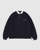 古着で買ってもあまり着ないランキング上位のラグビーシャツですが、こんな色なら着るんじゃないかと試行錯誤の結果に辿り着いたのがこの形。ラグビーシャツの肝でもある2トーンは残しつつ、着たい配色に変更。また裾は絞れる仕様にしたので、ちょっとスウェットライクにも着れる。洗い込む程風合いの良くなる、カリッとしたアメリカンな素材感の空紡糸を使用。地味だが着たくなる配色2色とオールブラックスよろしくなブラックx衿ホワイトの3色展開。テーラードジャケットのインナーにしても最高にいい仕事しそうです。