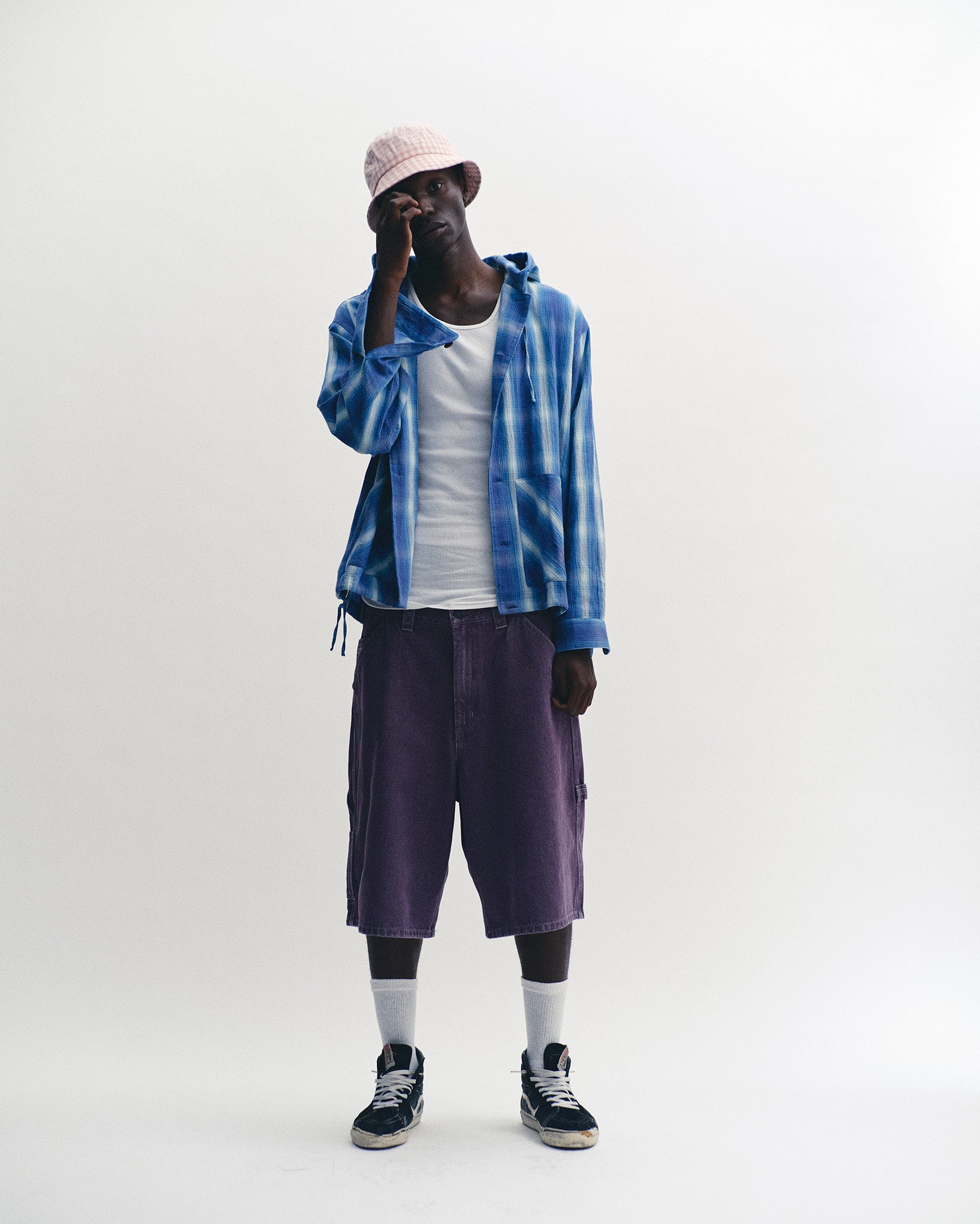Ombre Plaid Hooded Shirt