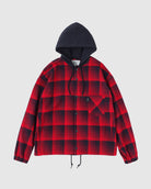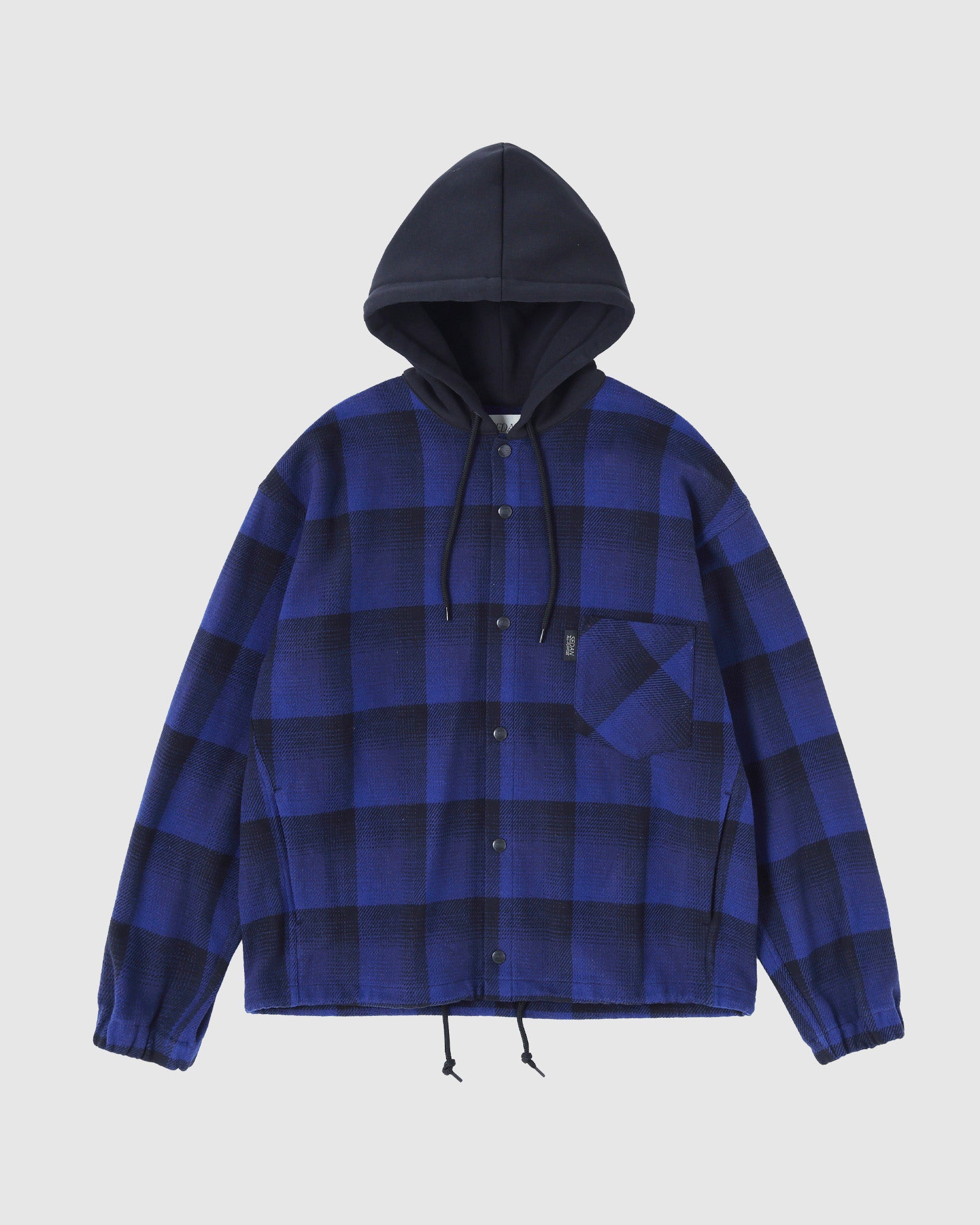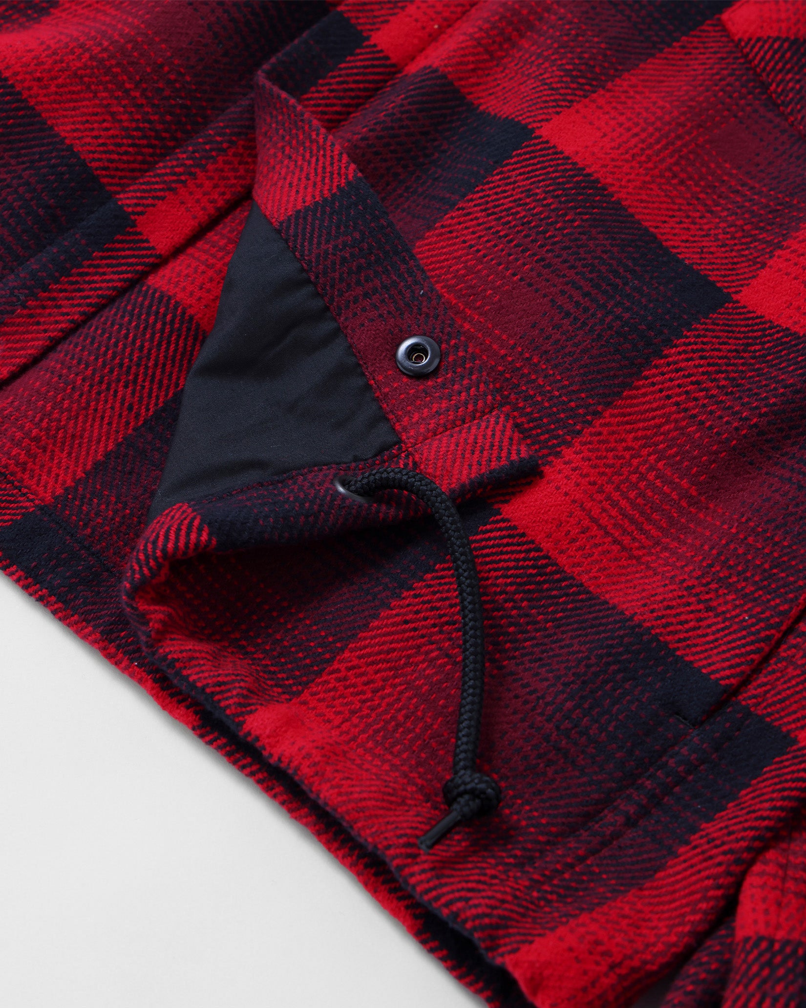 アメリカが生んだカジュアルアイテムは多数ありますが、そんな中でもピカイチで気になるアイテムがフード付きのネルシャツ。中綿があったりなかったり、裾がラウンドしてたりしてなかったりと様々なバリエーションを見ているだけでも楽しいアイテム。そんな中でもフードが2重になっているものは当たり(個人の感想)です。だいたいが1枚でペラっとしているのでちょっと頼りないのです。そんなわけで理想のフード付きネルシャツを作りました。ごわっとしたいなたいチェックの生地に、分厚い裏起毛の2重フード、秋口にさらっと着たいので中綿は無し。フロントボタンはコーチジャケットよろしくなスナップボタン仕様。袖口の開け締めも面倒くさいのでゴム。裾とフードはドローコードで絞れるように。これでちょっと肌寒い時にも安心。今シーズンは新たにシームポケットもついて盤石の仕様となりました。完璧です。