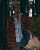 昔からブレずに大好きなプリントネルシャツ。いつの時代も大きいサイズが出にくいという悩みをお抱えの方も多いかと思い、作りました。ベースの生地は古着の柔らかい素材感をイメージした起毛ツイル。シルエットはワイドフィットで気持ち短め着丈のオープンカラー。両胸にフラップ付きのポケット。おなじみの背面裾にロゴ刺繍入り。2.5mm厚の高瀬貝ボタンを使用。大きなサイズがほしいのでM~XXLの4サイズ展開。