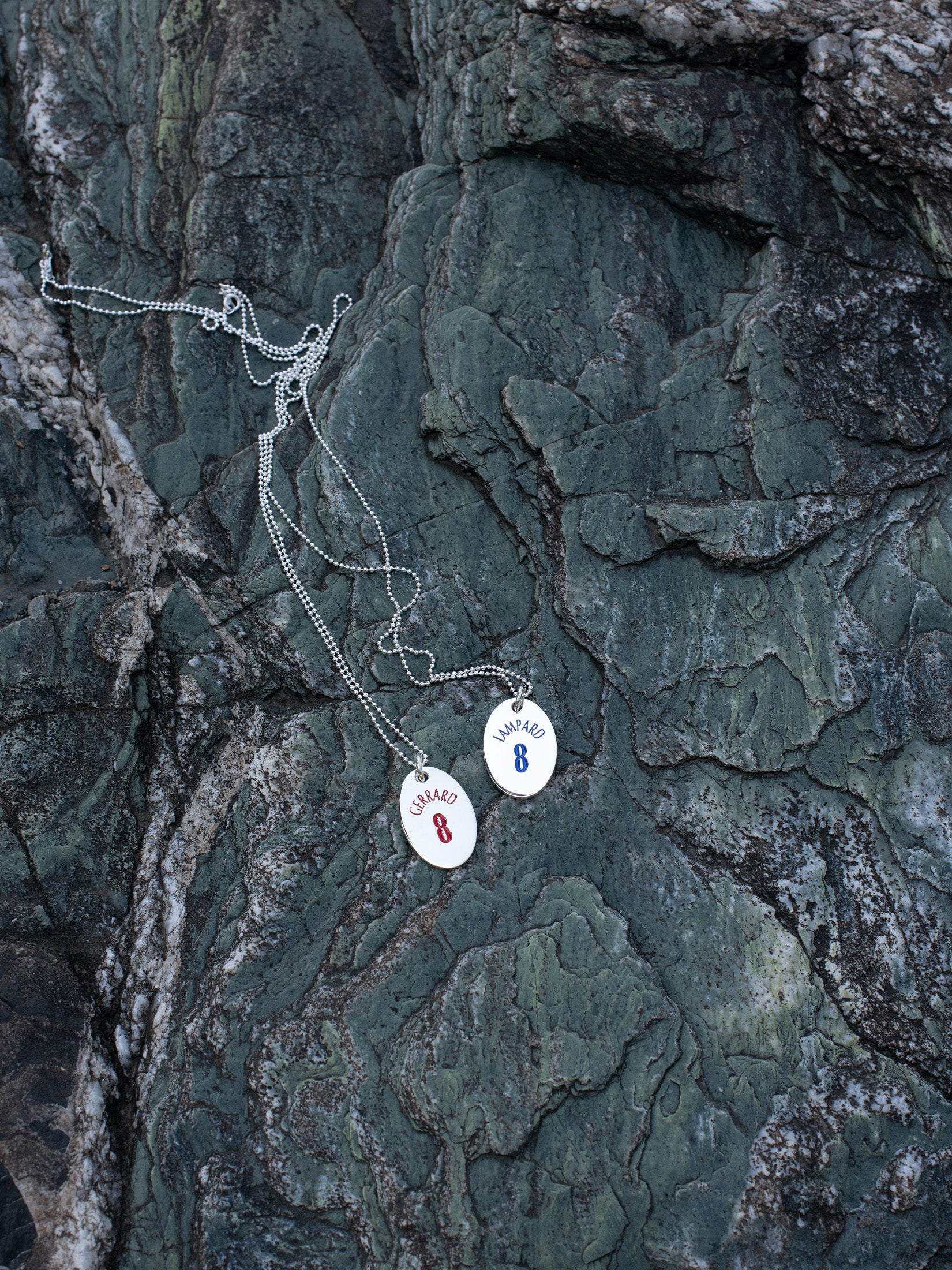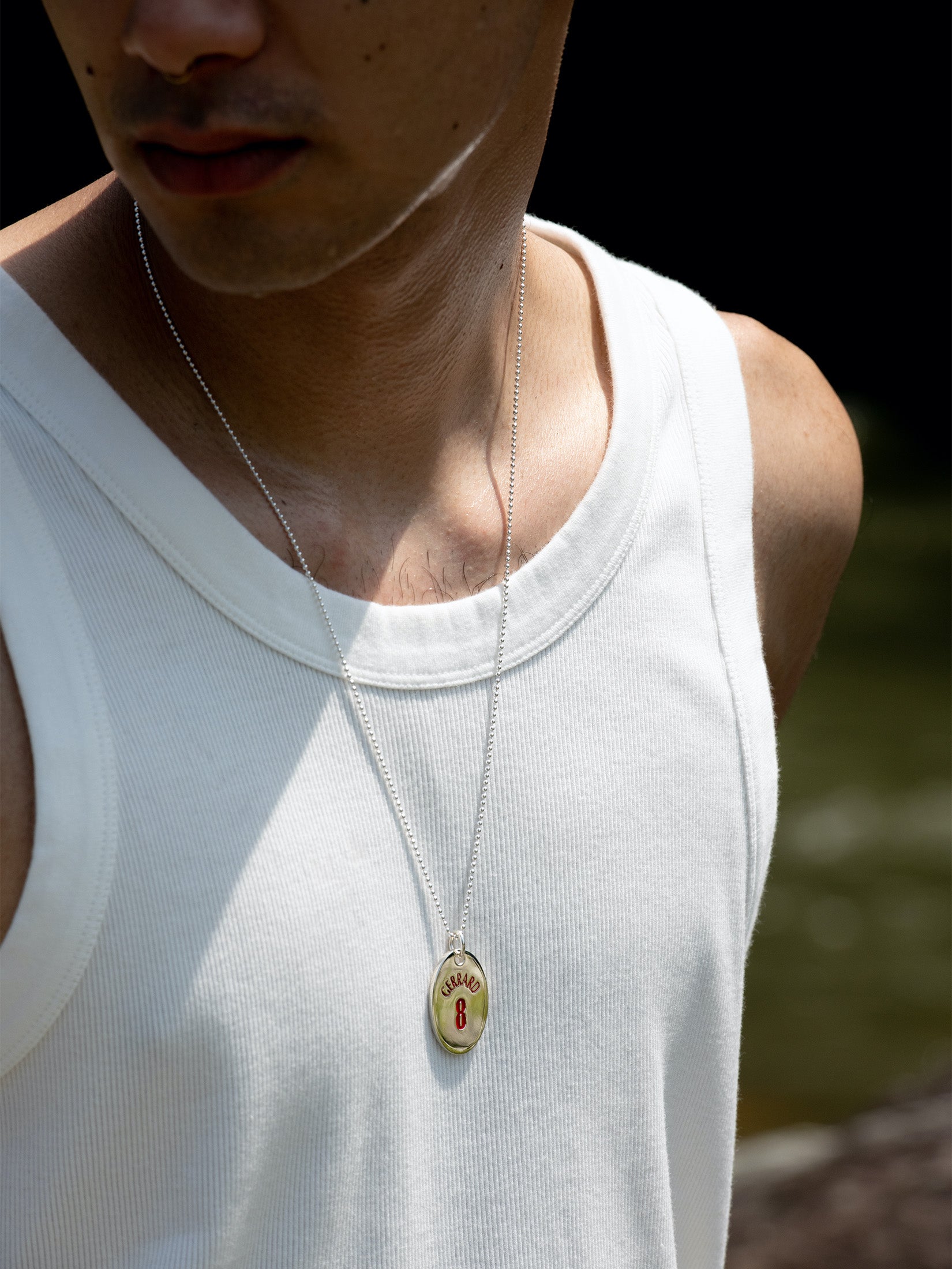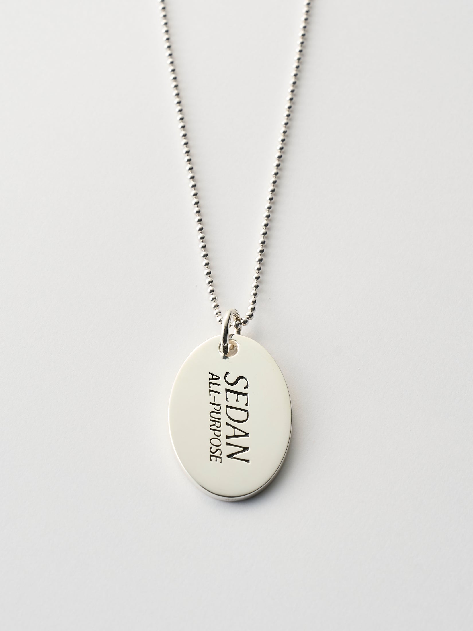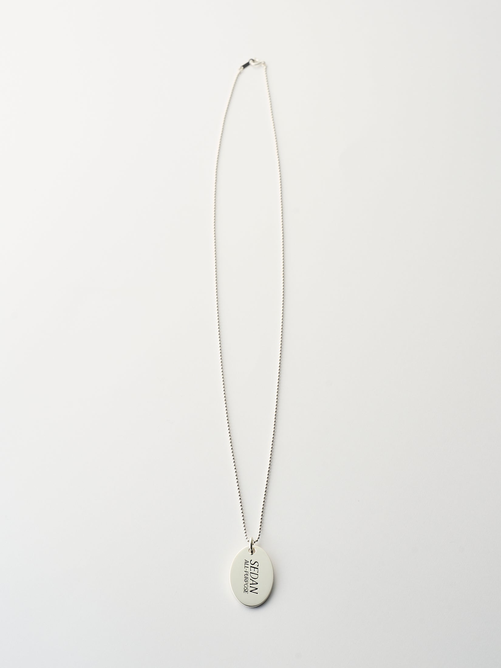 男のネックレスといえばドッグタグ。ミリタリーがルーツだったりするのでメンズアクセサリーでは最も入門しやすいネックレスだと言えるでしょう。そんなボールチェーン仕立てのドックタグをSEDANの下げ札に見立てたデザインで作りました。しかもSEDAN初のシルバー925製。ずっしりとしたプレートとシルバーでは珍しいカラーを入れたデザインにしてみました。裏面には憧れのリーグの憧れの選手っぽい名前と番号がカラーで入ります。制作はインサイド・アウトでアップサイド・ダウンなモノ作りを得意とするアクセサリーブランド「IN-PUT-OUT」に依頼。