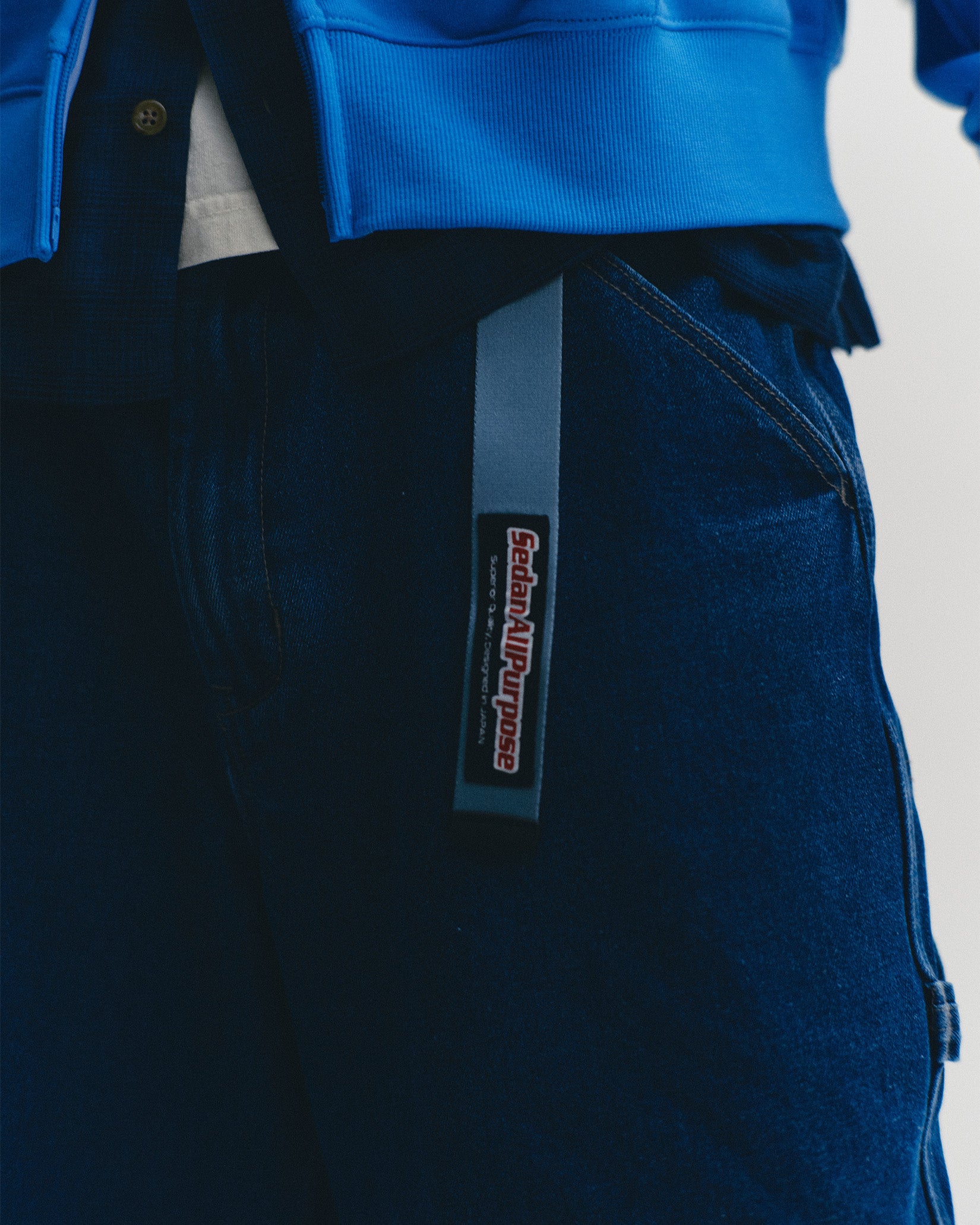 それまでのイメージを刷新するためか、HIP HOPやグラフィティの影響を受けたのか、90年代後半から00年代前半にSurf&Skate系のロゴが変わっていった時代がある。そんな時代をイメージして作ったセダンのスケートロゴ。そのロゴが垂れ下がったテープに鎮座するナイロンベルトを作った。アウトドアブランドが作りそうなナイロンベルトだけども、デニムからスラックスまでいろんなスタイルの味付けに使って欲しいので、カラーもいっぱい作りました。ちょっと太めの30mm幅ベルトが今の気分です。