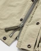 古くから様々なブランドでサンプリングされてきたミリタリーコートの名作をショートタイプのジャケットにしました。コットンナイロンの生地を巻き縫いしてミリタリーの雰囲気をビシビシと感じられるジャケットを作り、製品洗い加工を入れてパッカリングやアタリ感もあるものに仕上げました。また裾はドローコードで絞ってシルエットを変えることができます。左胸にはSEDANのロゴ刺繍入り。
