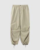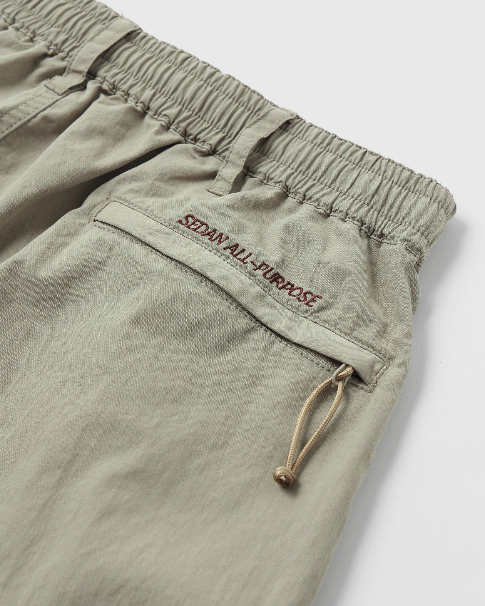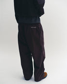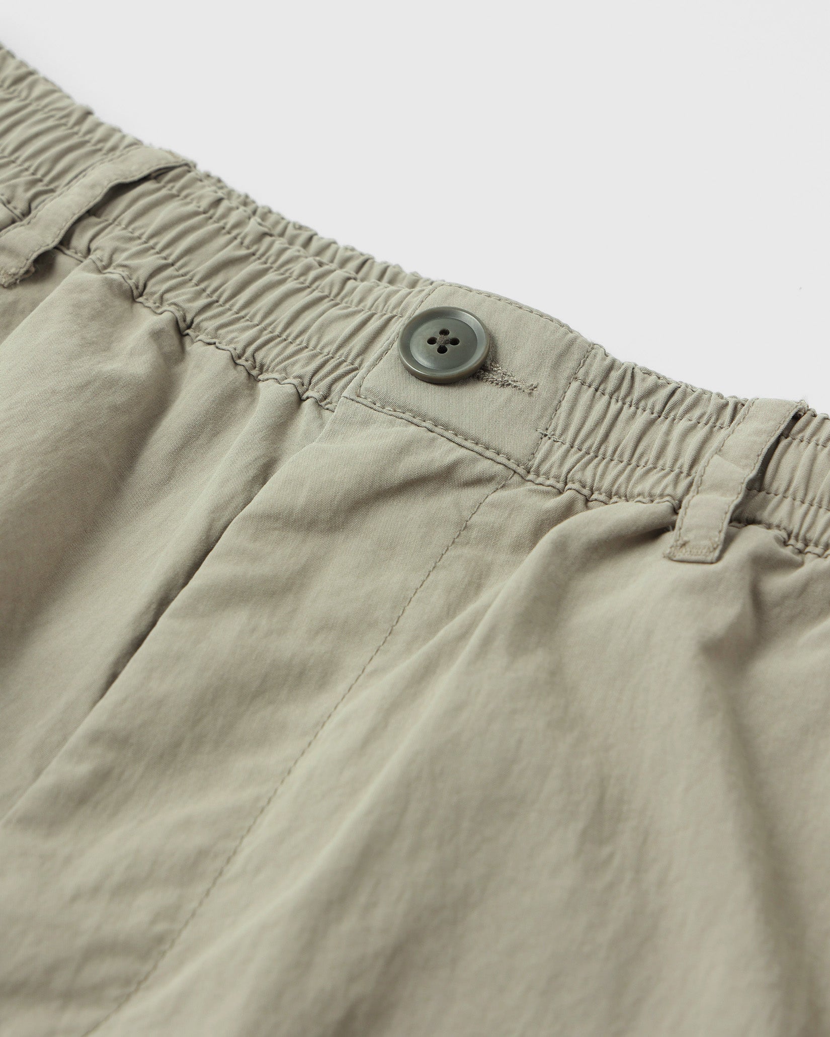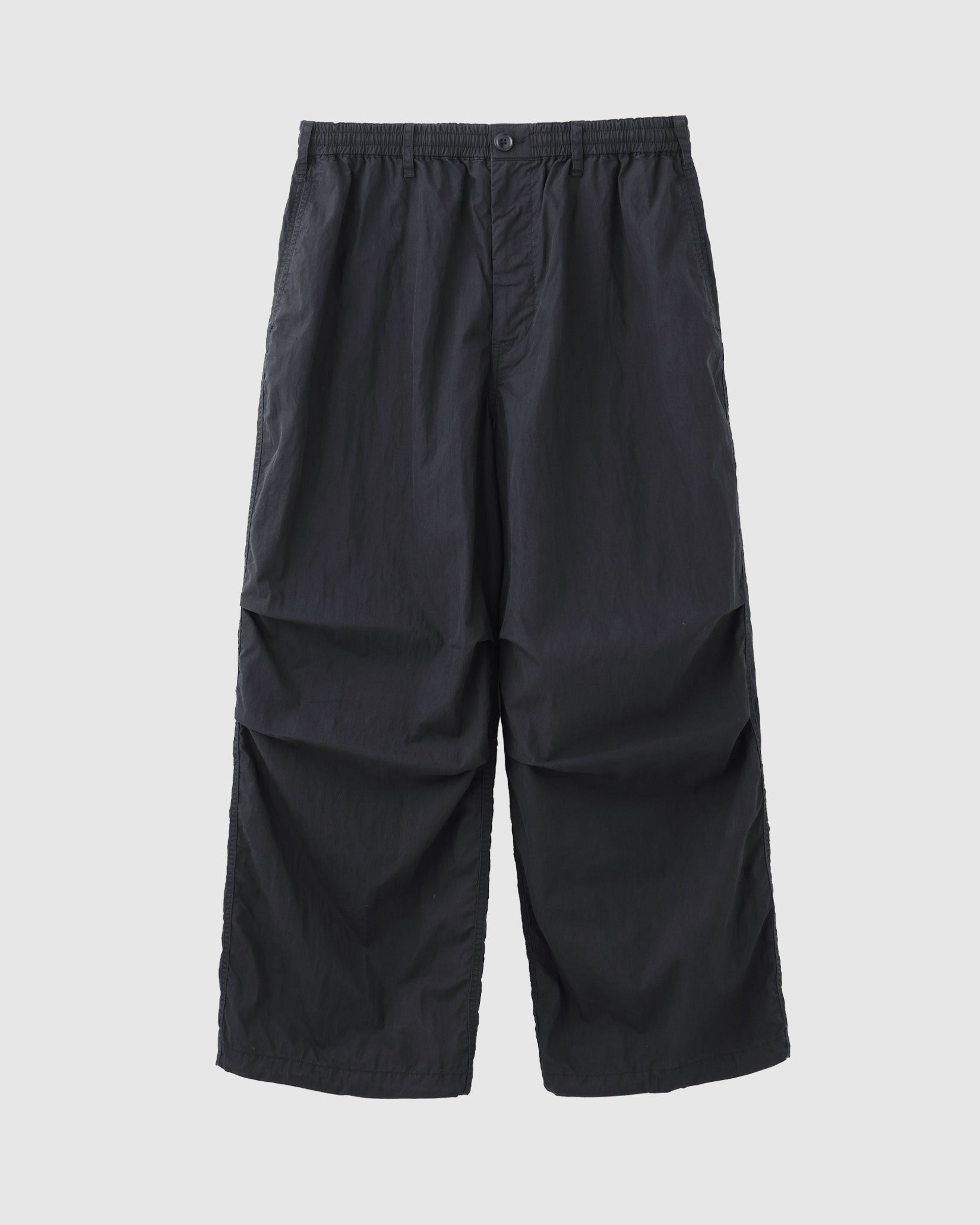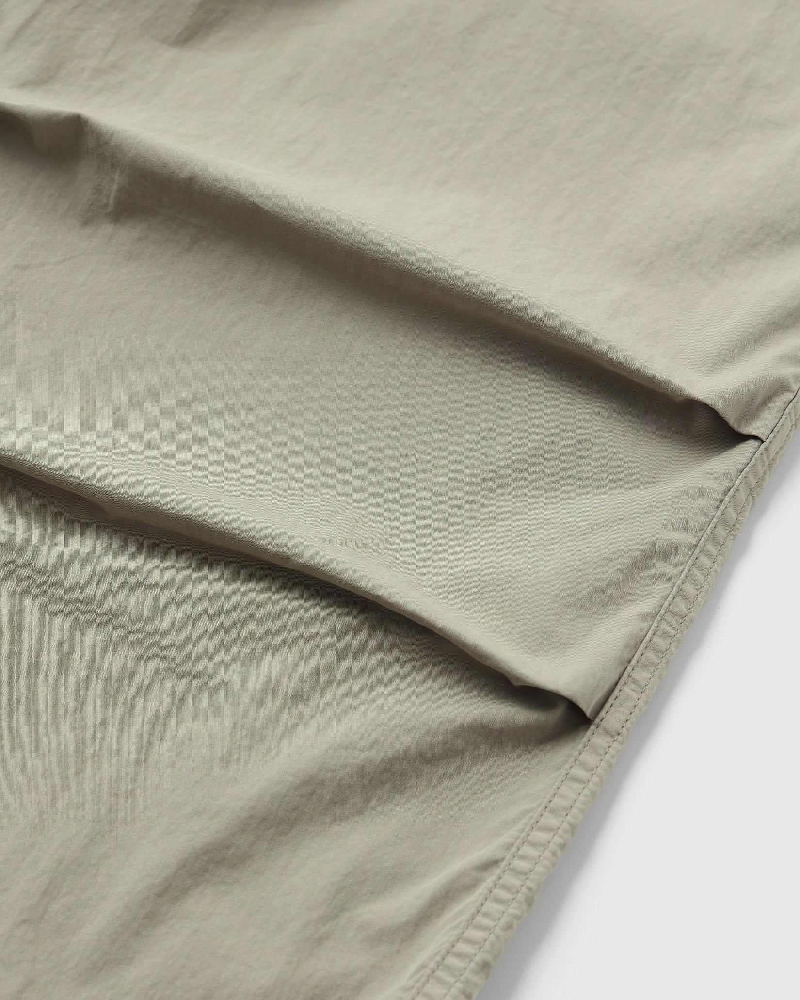 定番で作っているオーバーパンツですが、今年は裾幅を広げてよりワイドフィットに。生地はコットンxナイロンで、製品洗いしているのでシャカシャカでもバリバリでもない雰囲気のある1本に仕上がりました。ウエストはゴム+紐、裾にも紐、バックポケットはファスナー開き。